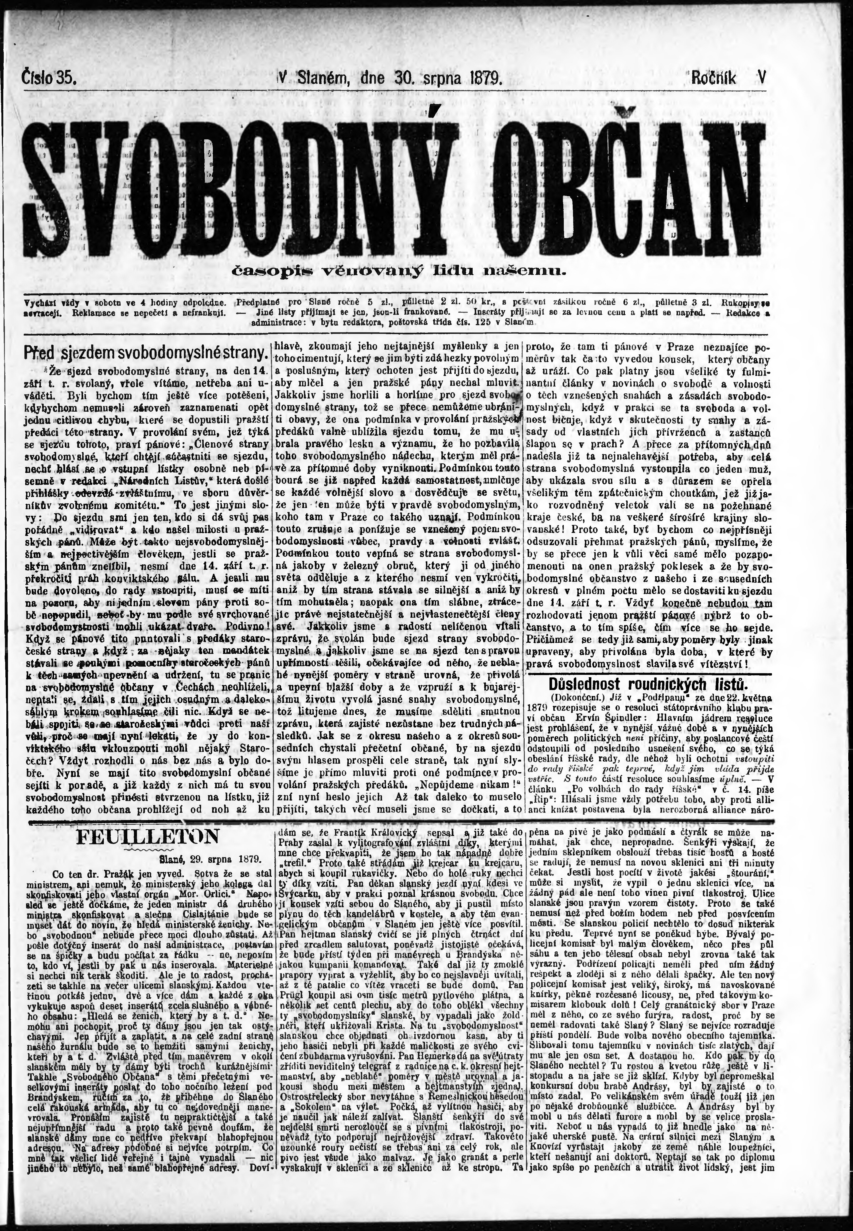 * Datum vydání výtisku: 30.8.1879 Číslo výtisku: 35