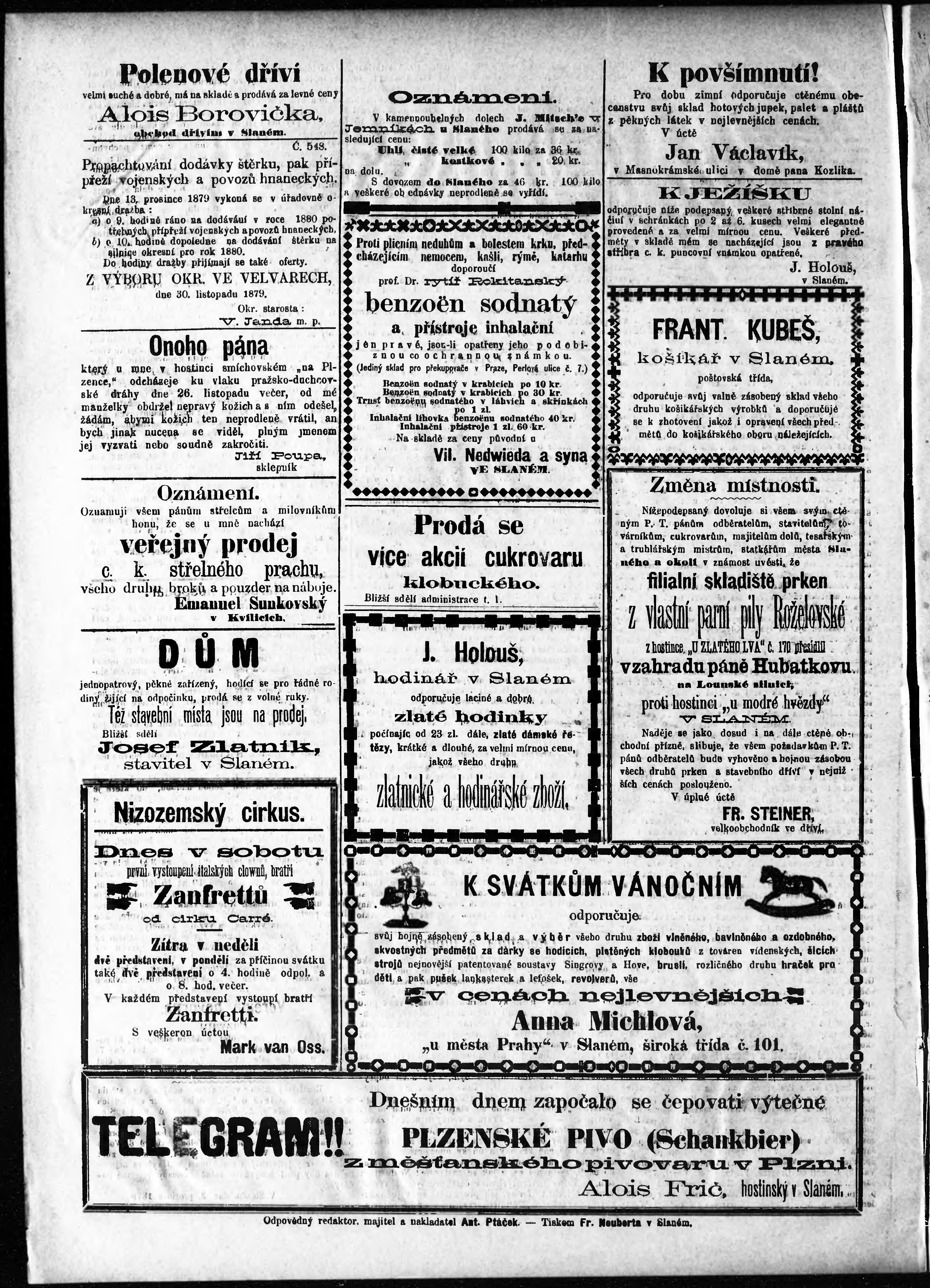 * Datum vydání výtisku: 6.12.1879 Číslo výtisku: 49