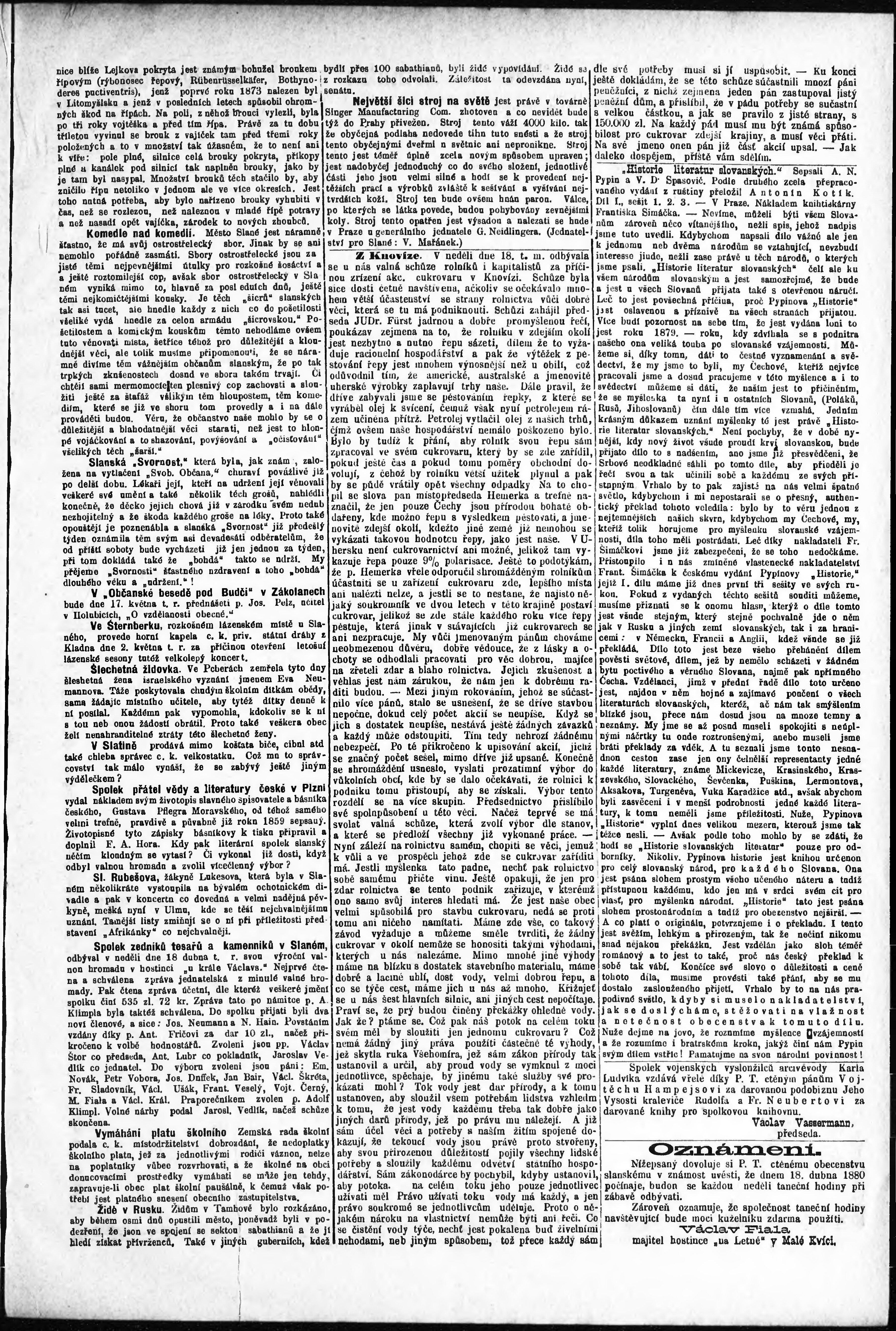* Datum vydání výtisku: 24.4.1880 Číslo výtisku: 17