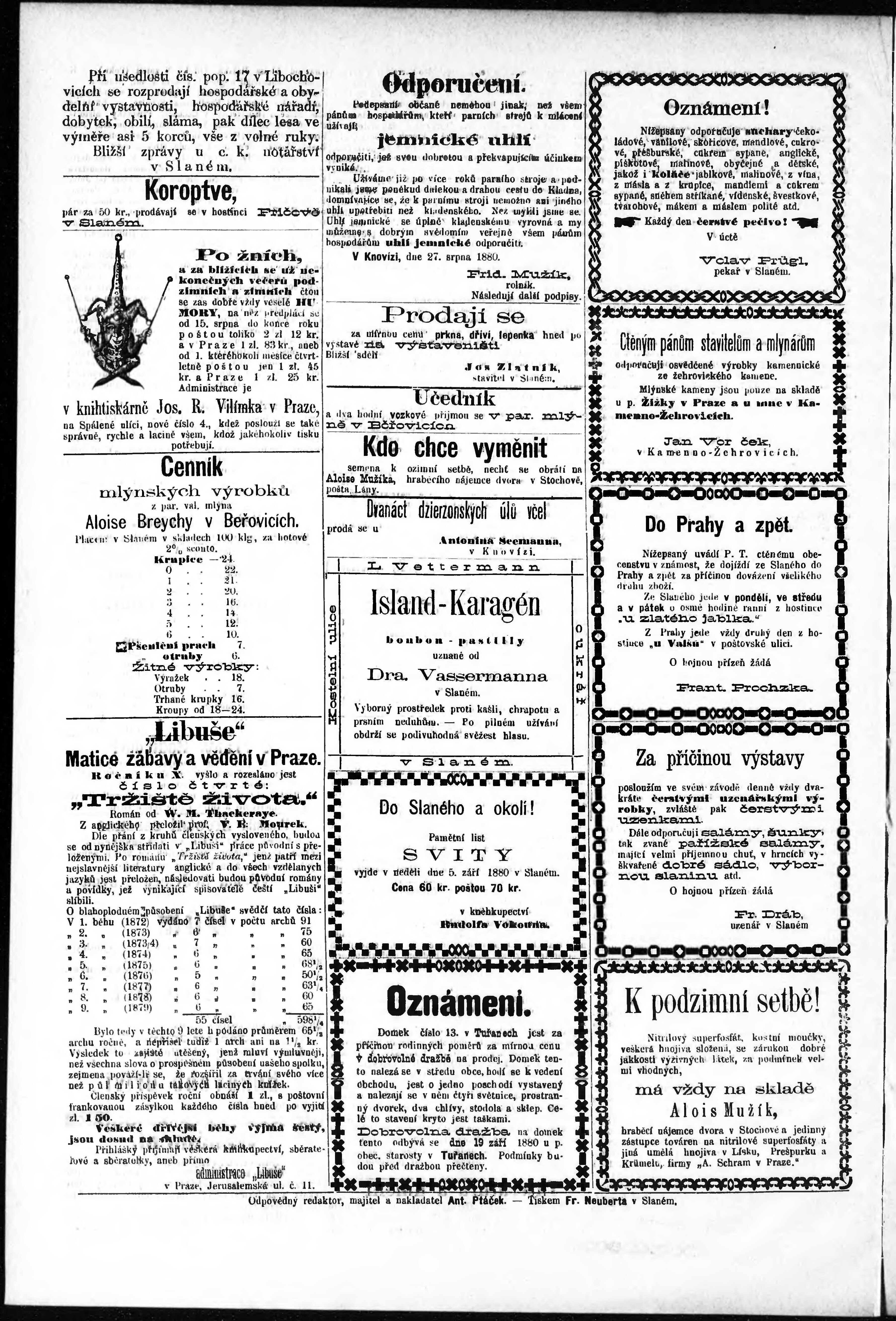 * Datum vydání výtisku: 4.9.1880 Číslo výtisku: 36