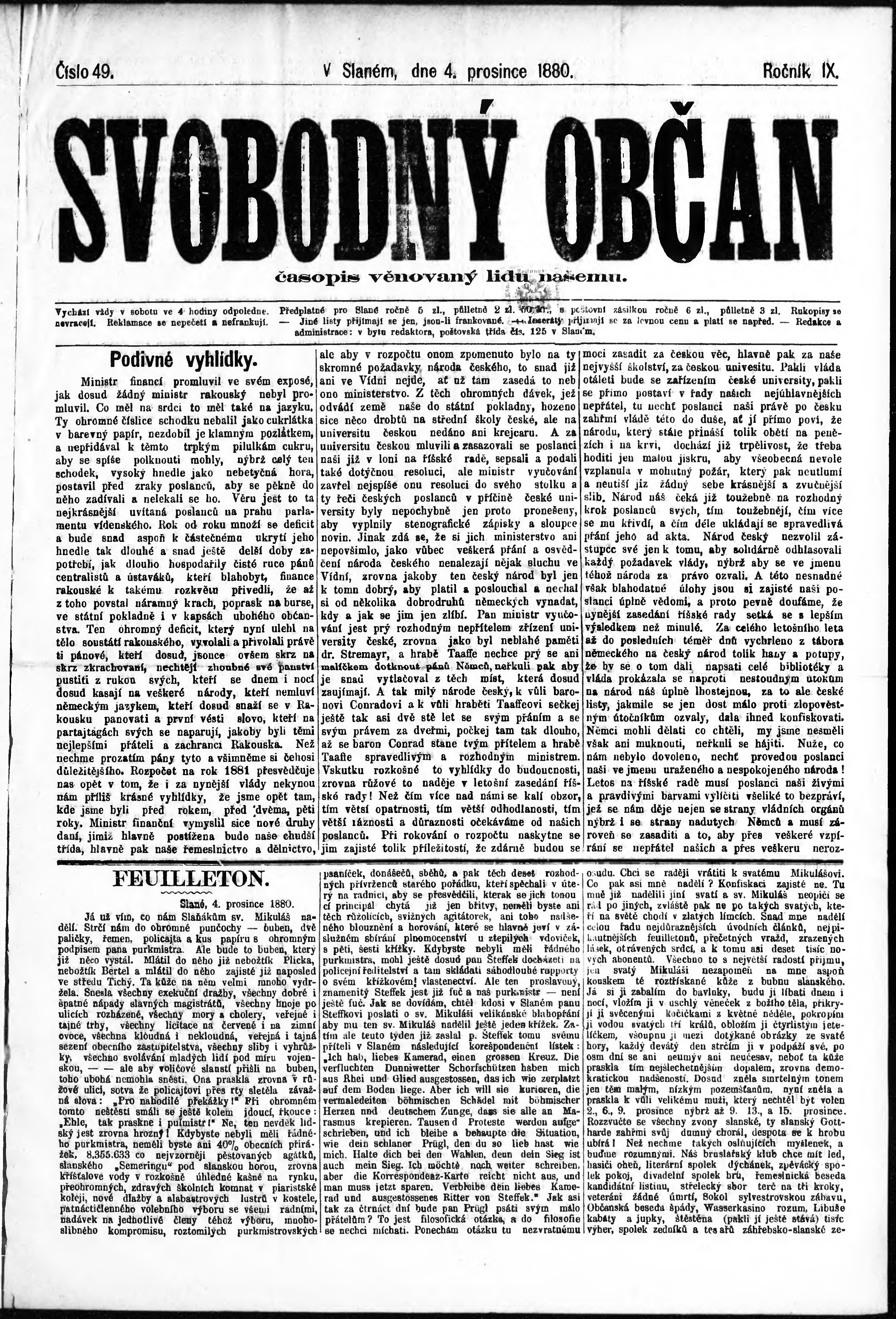 * Datum vydání výtisku: 4.12.1880 Číslo výtisku: 49