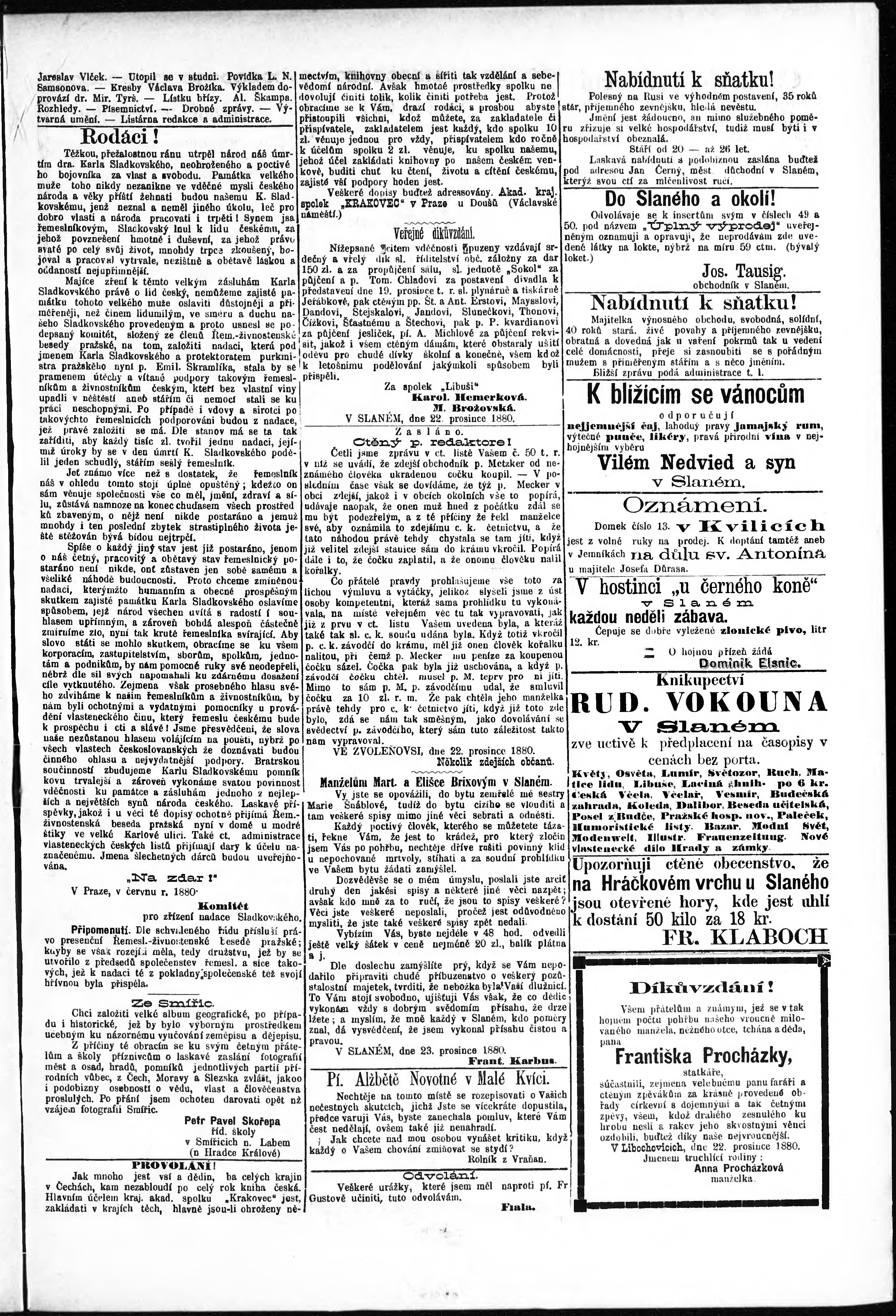 * Datum vydání výtisku: 24.12.1880 Číslo výtisku: 52