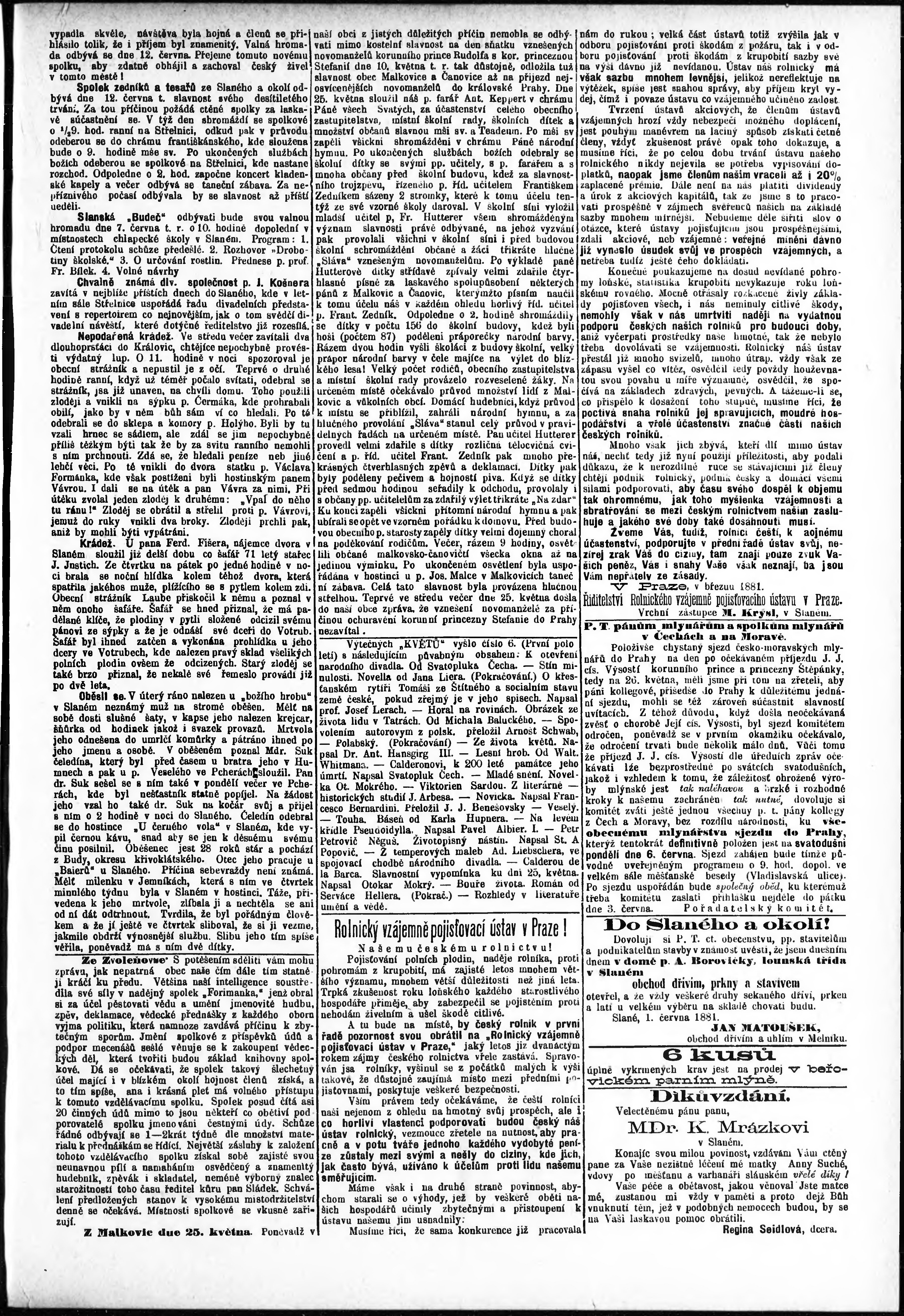 * Datum vydání výtisku: 4.6.1881 Číslo výtisku: 23