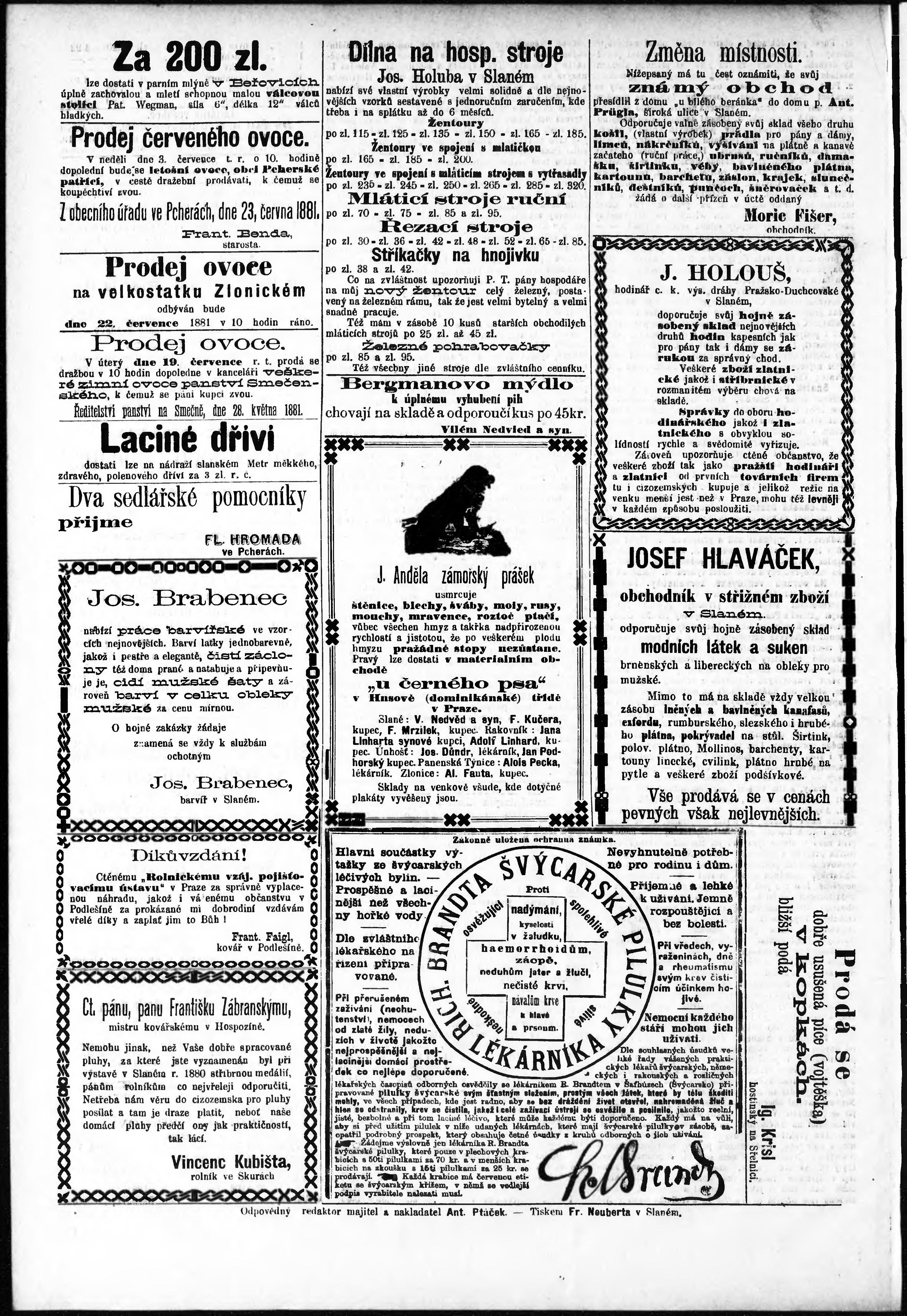 * Datum vydání výtisku: 25.6.1881 Číslo výtisku: 26