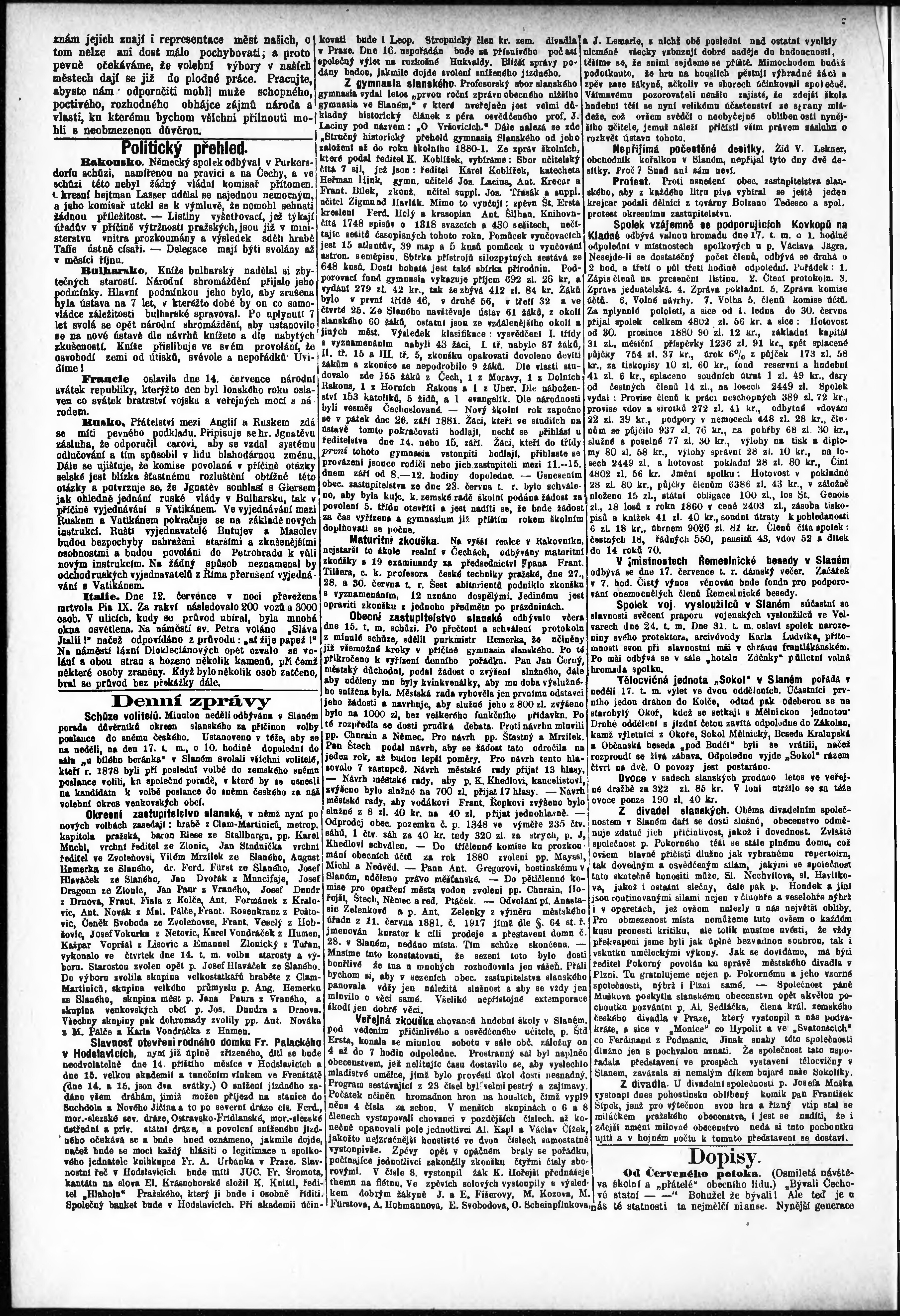 * Datum vydání výtisku: 16.7.1881 Číslo výtisku: 29