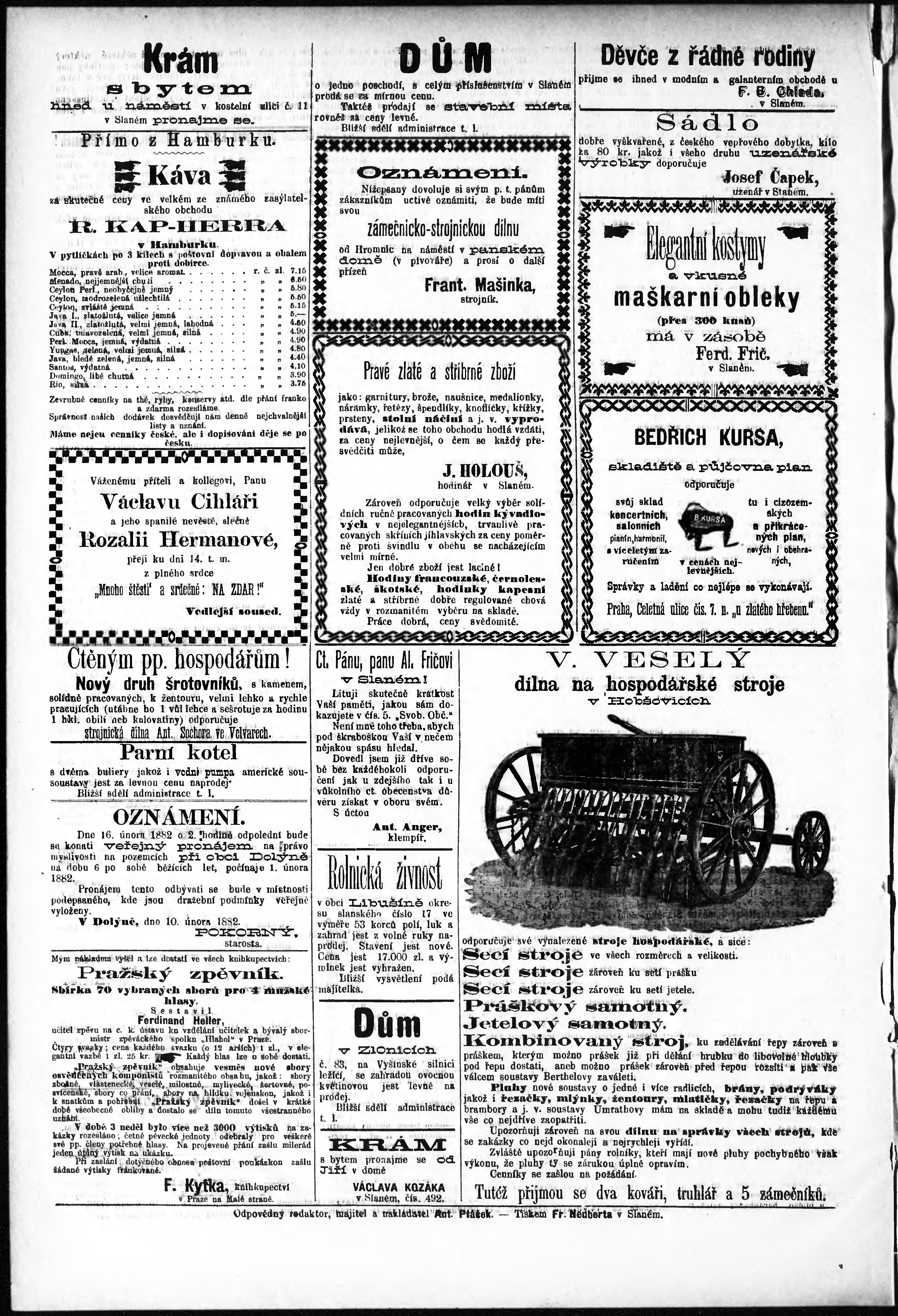 * Datum vydání výtisku: 11.2.1882 Číslo výtisku: 6