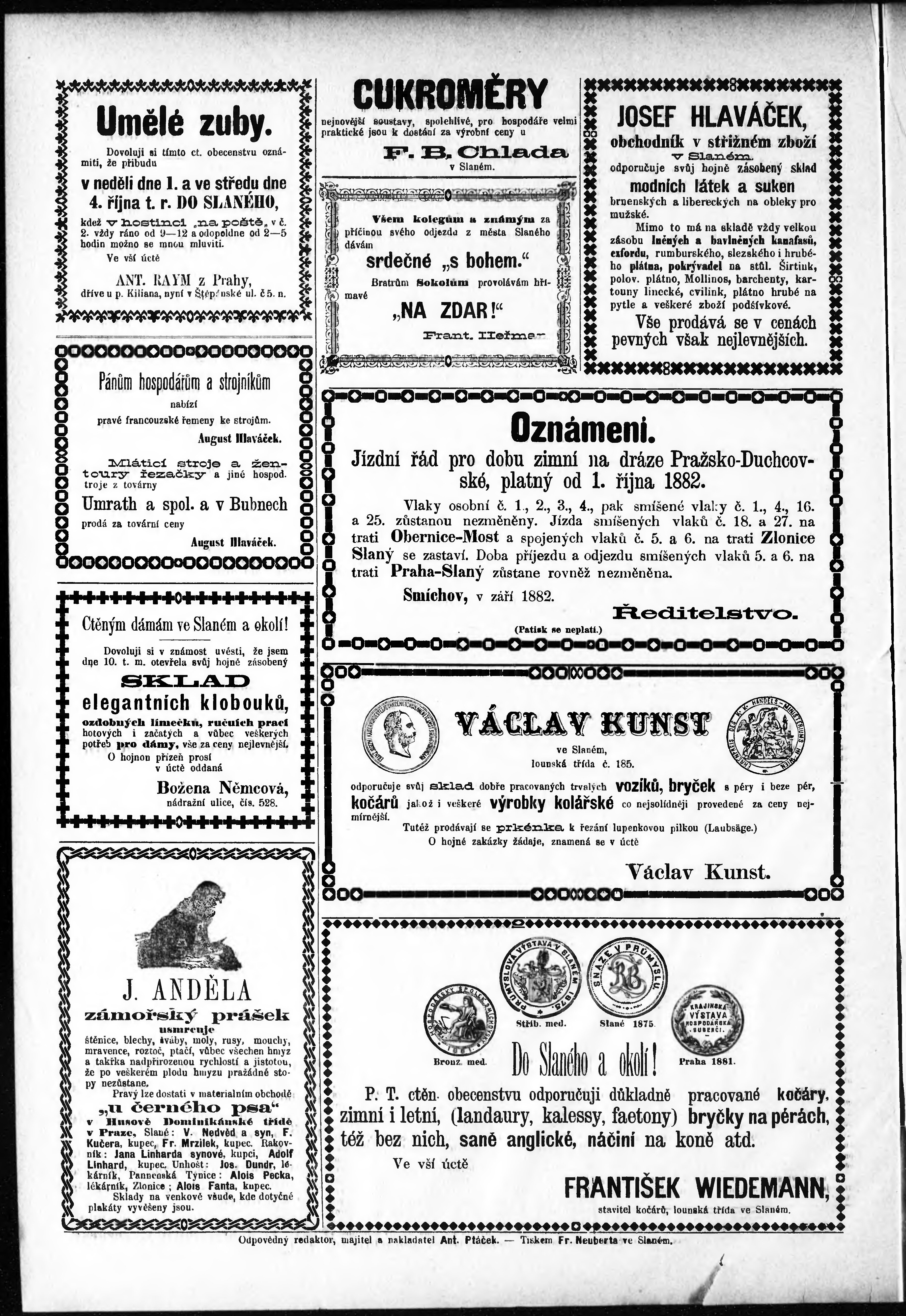 * Datum vydání výtisku: 30.9.1882 Číslo výtisku: 39