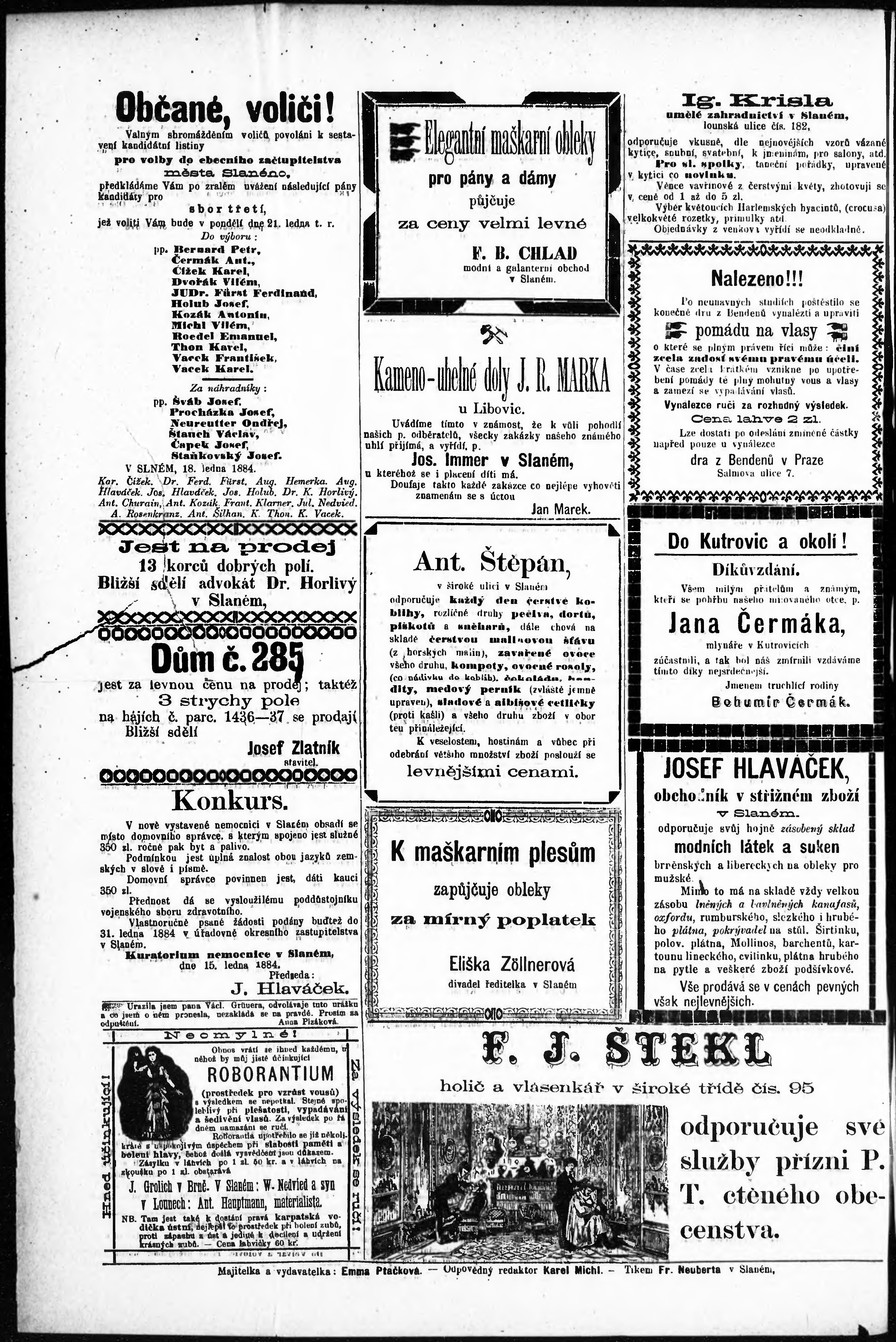 * Datum vydání výtisku: 19.1.1884 Číslo výtisku: 3