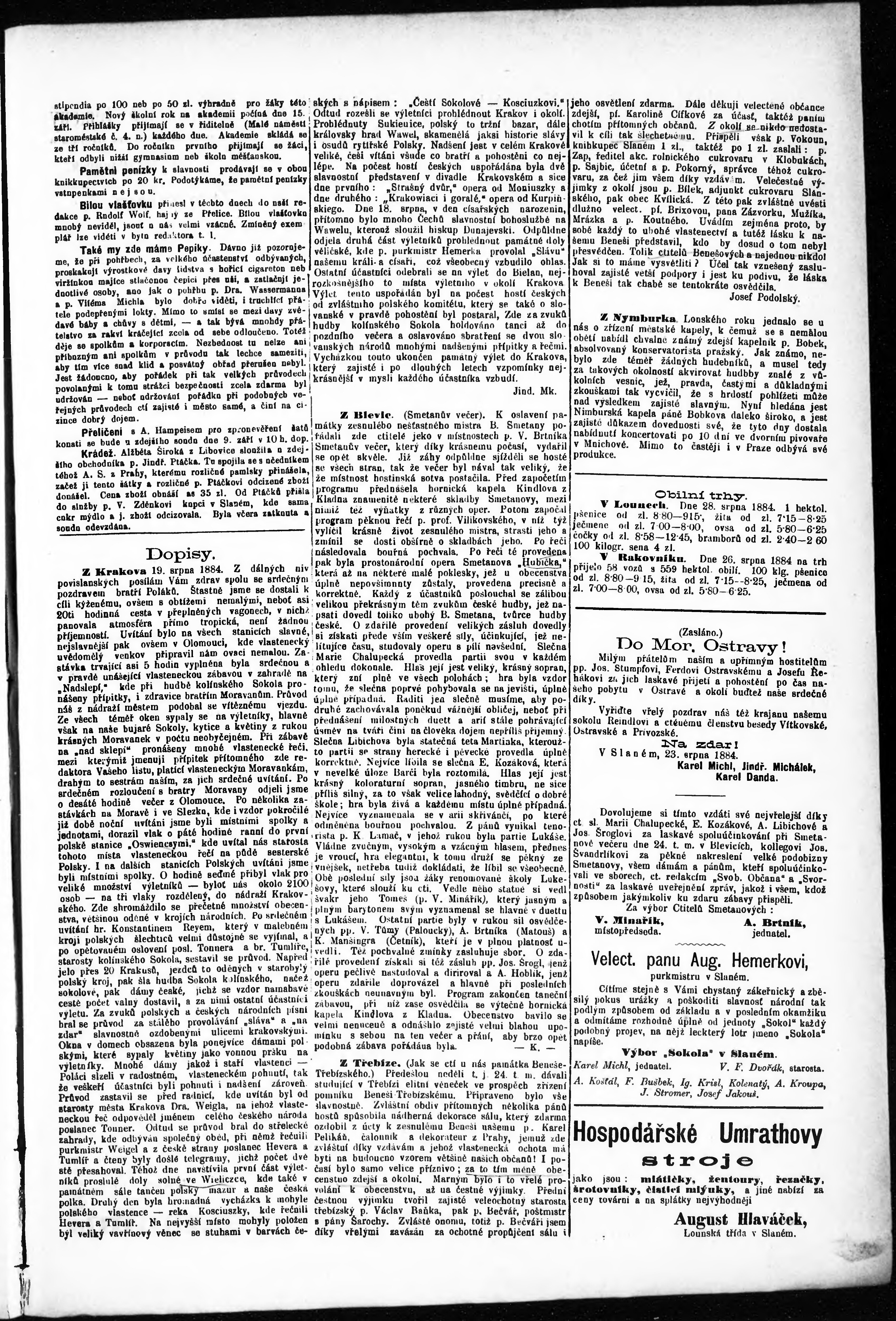 * Datum vydání výtisku: 30.8.1884 Číslo výtisku: 35