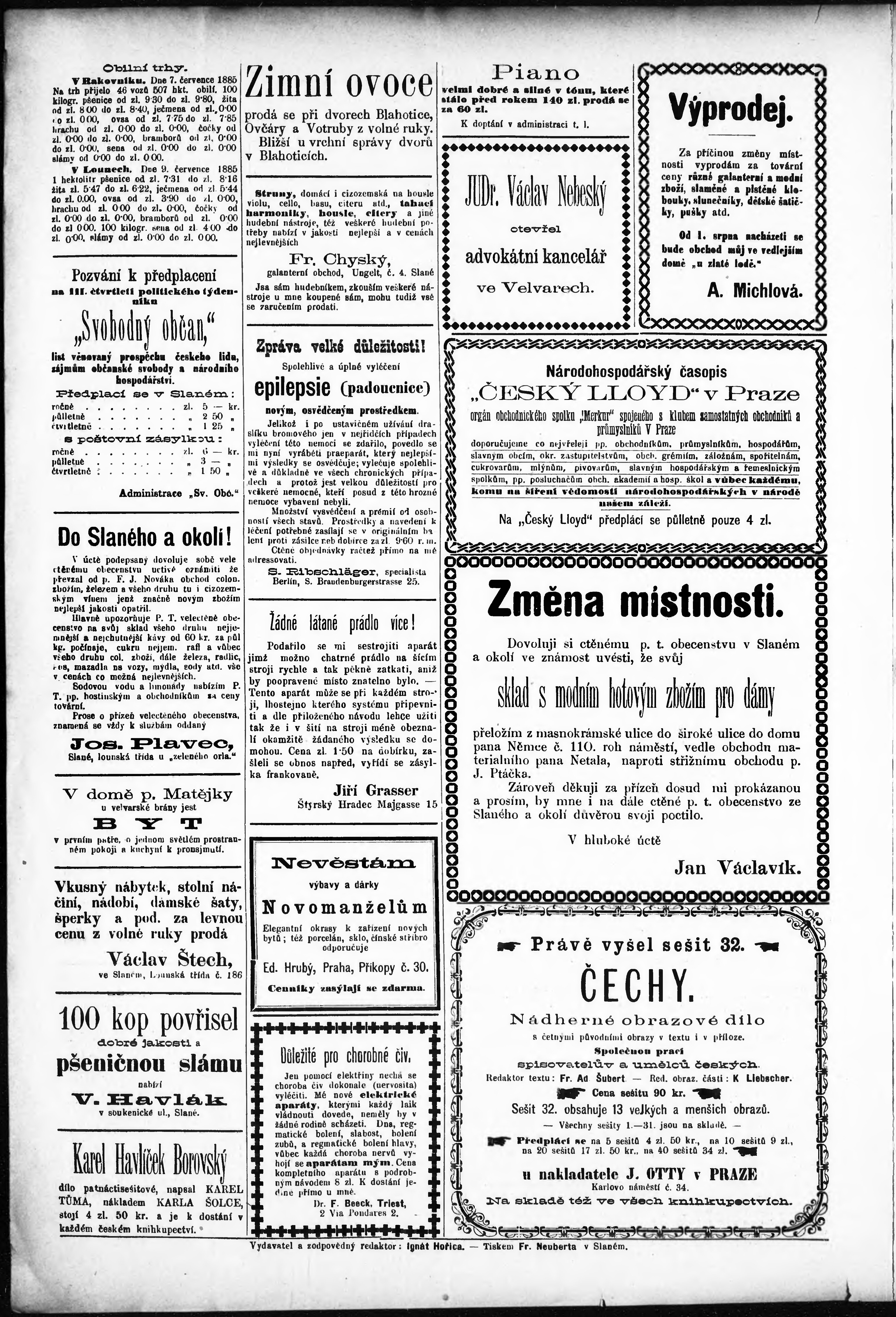 * Datum vydání výtisku: 11.7.1885 Číslo výtisku: 28