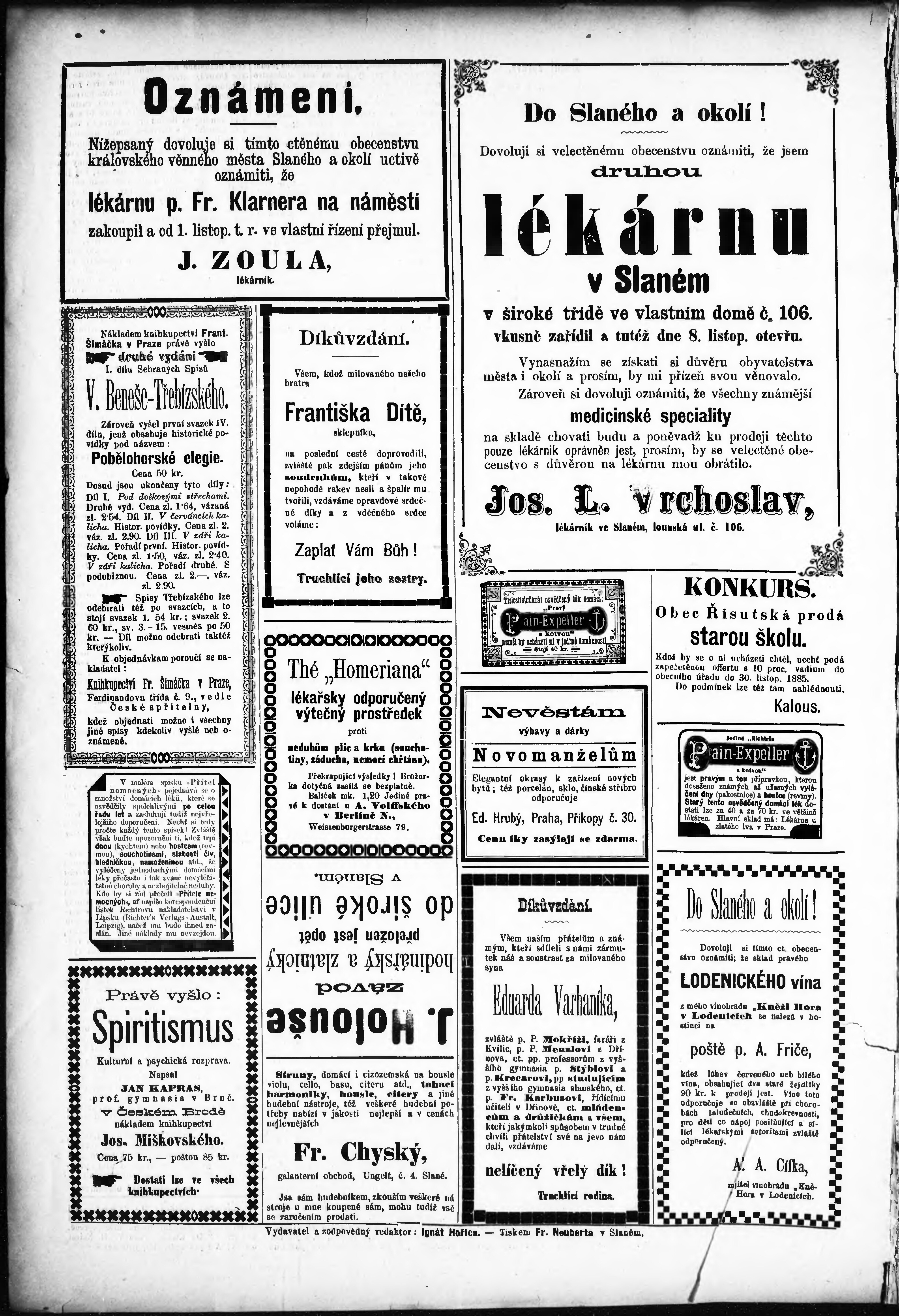 * Datum vydání výtisku: 7.11.1885 Číslo výtisku: 45 Poznámky k výtisku: chybný údaj v čísle ročníku;