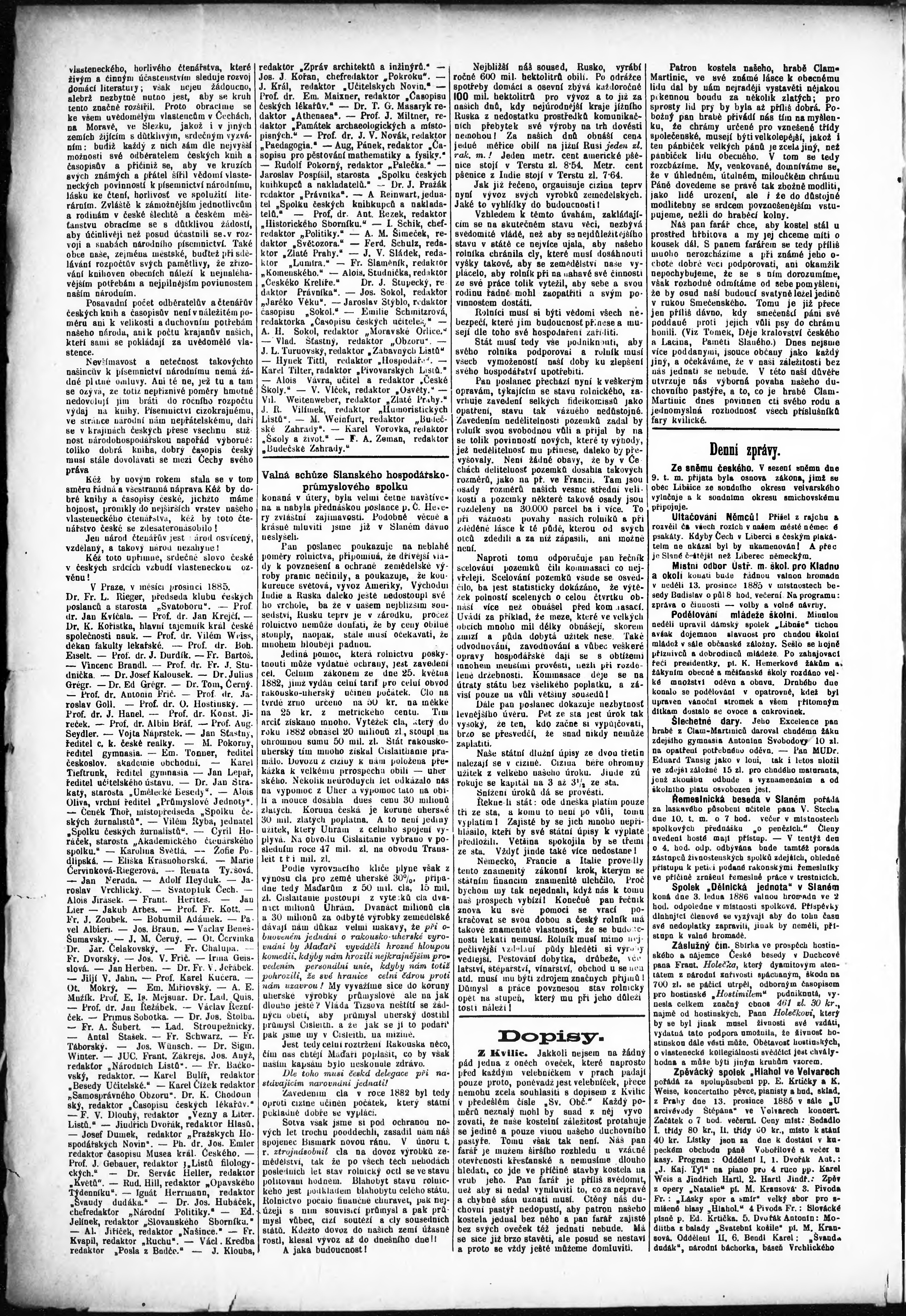 * Datum vydání výtisku: 12.12.1885 Číslo výtisku: 50 Poznámky k výtisku: chybný údaj v čísle ročníku;