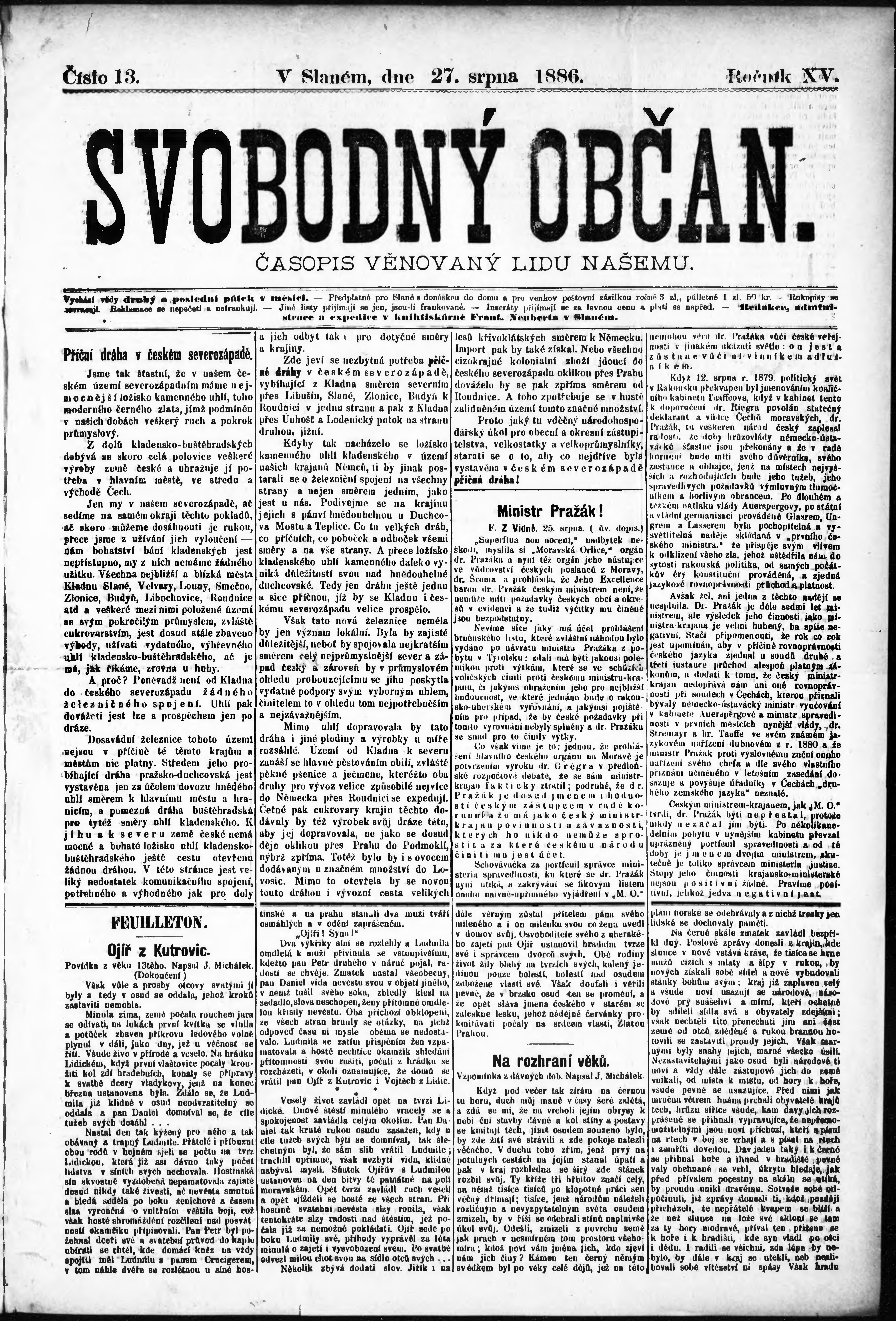 * Datum vydání výtisku: 27.8.1886 Číslo výtisku: 13