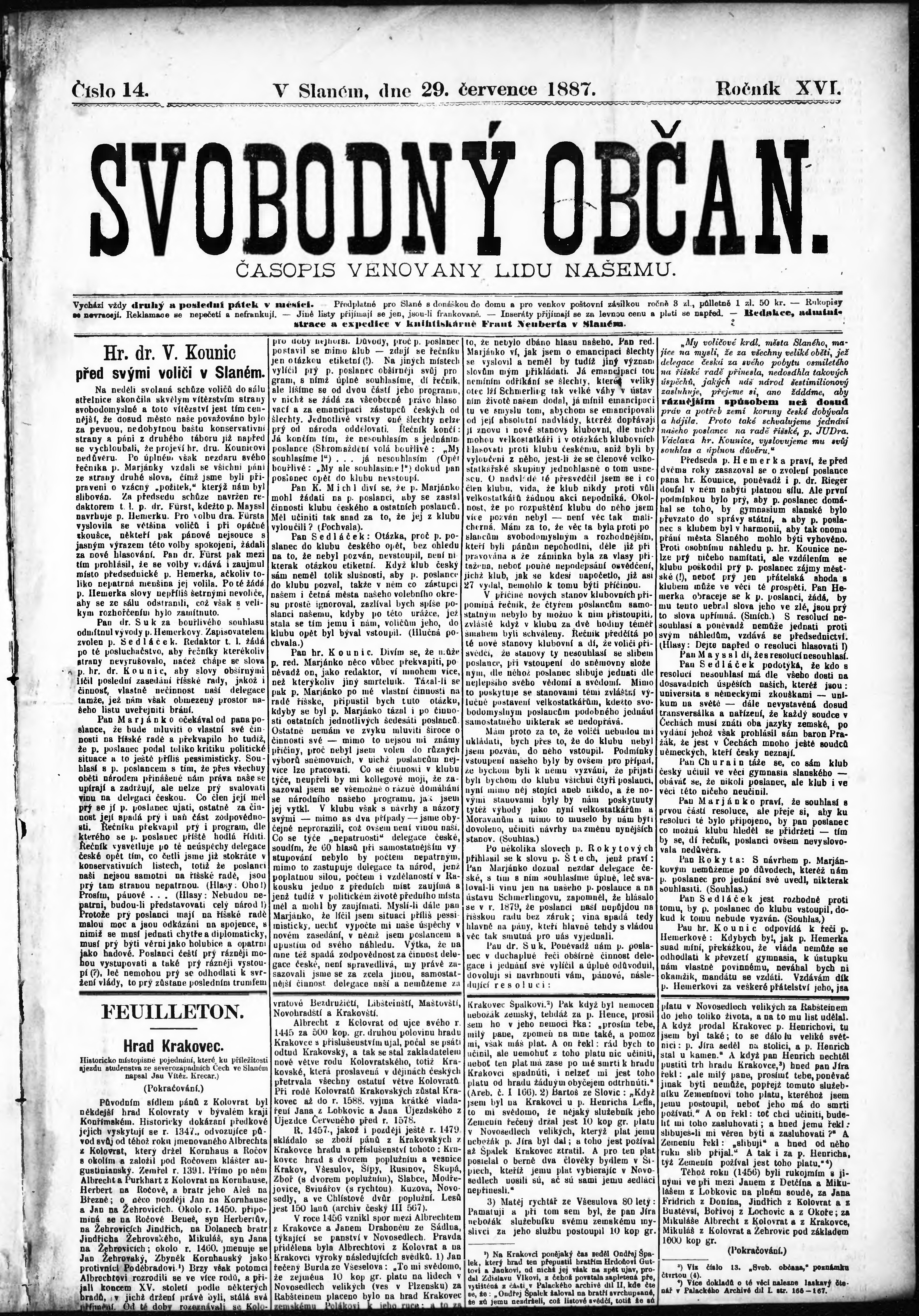 * Datum vydání výtisku: 29.7.1887 Číslo výtisku: 14