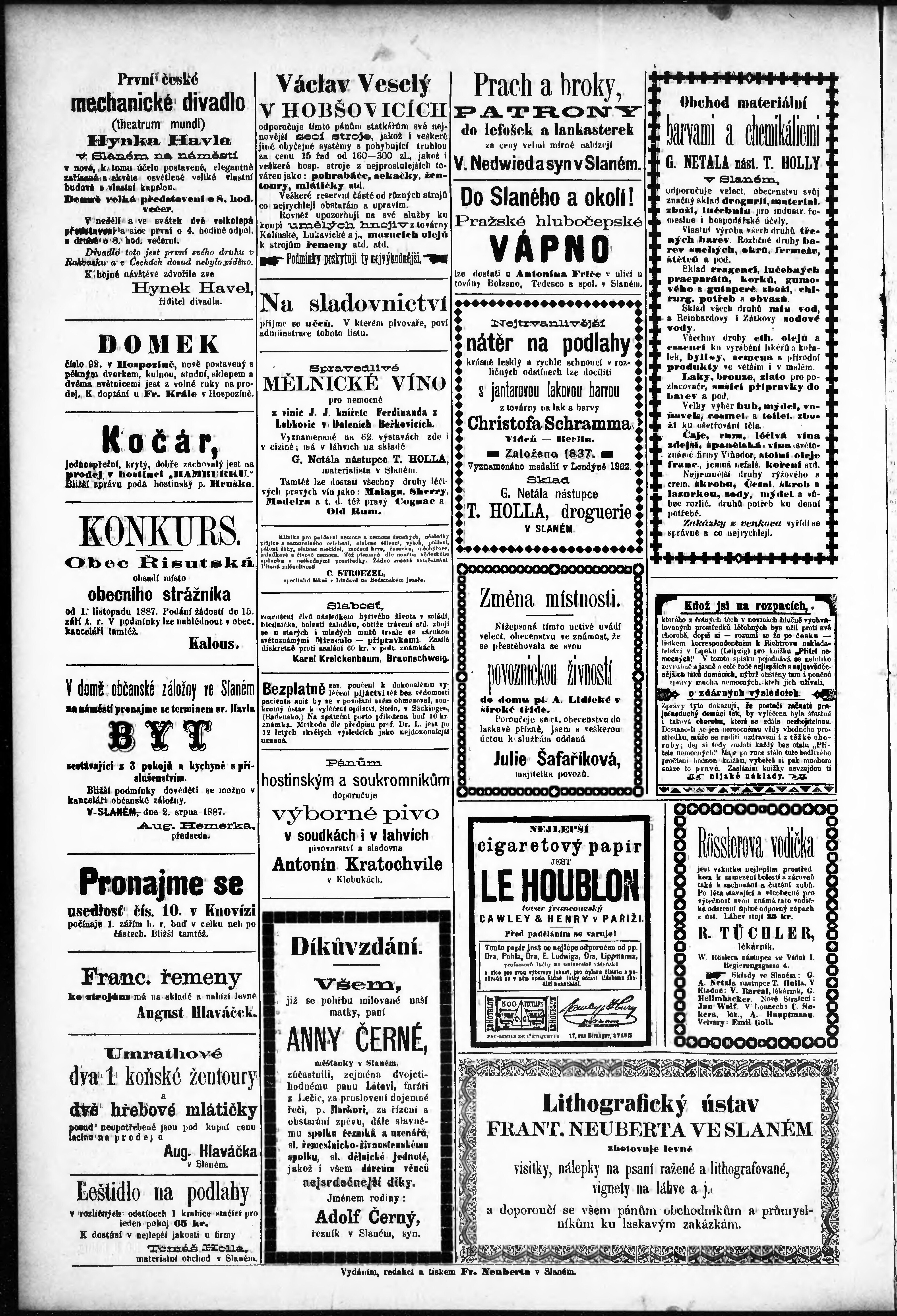 * Datum vydání výtisku: 26.8.1887 Číslo výtisku: 16