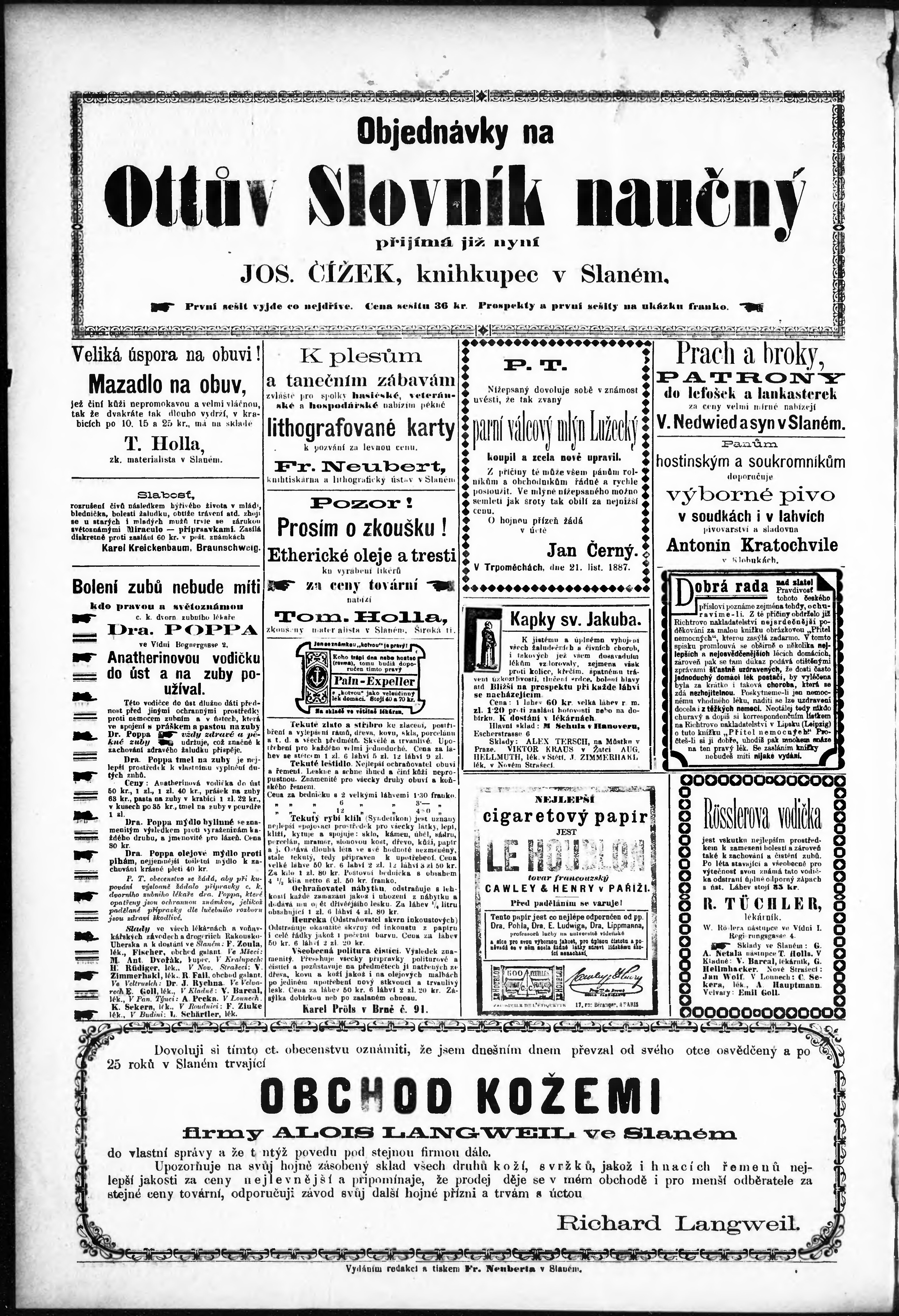 * Datum vydání výtisku: 13.1.1888 Číslo výtisku: 1