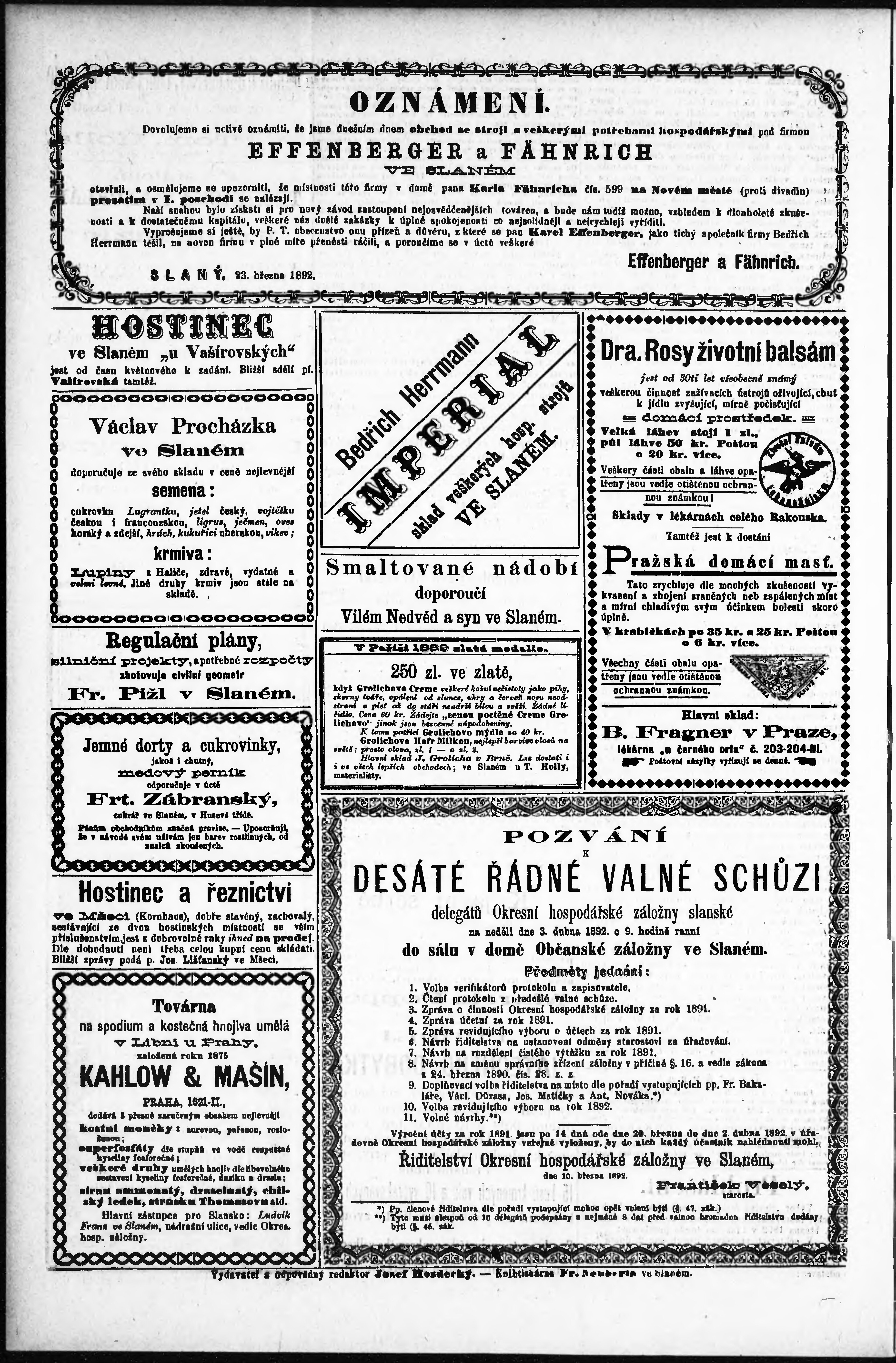 * Datum vydání výtisku: 25.3.1892 Číslo výtisku: 6