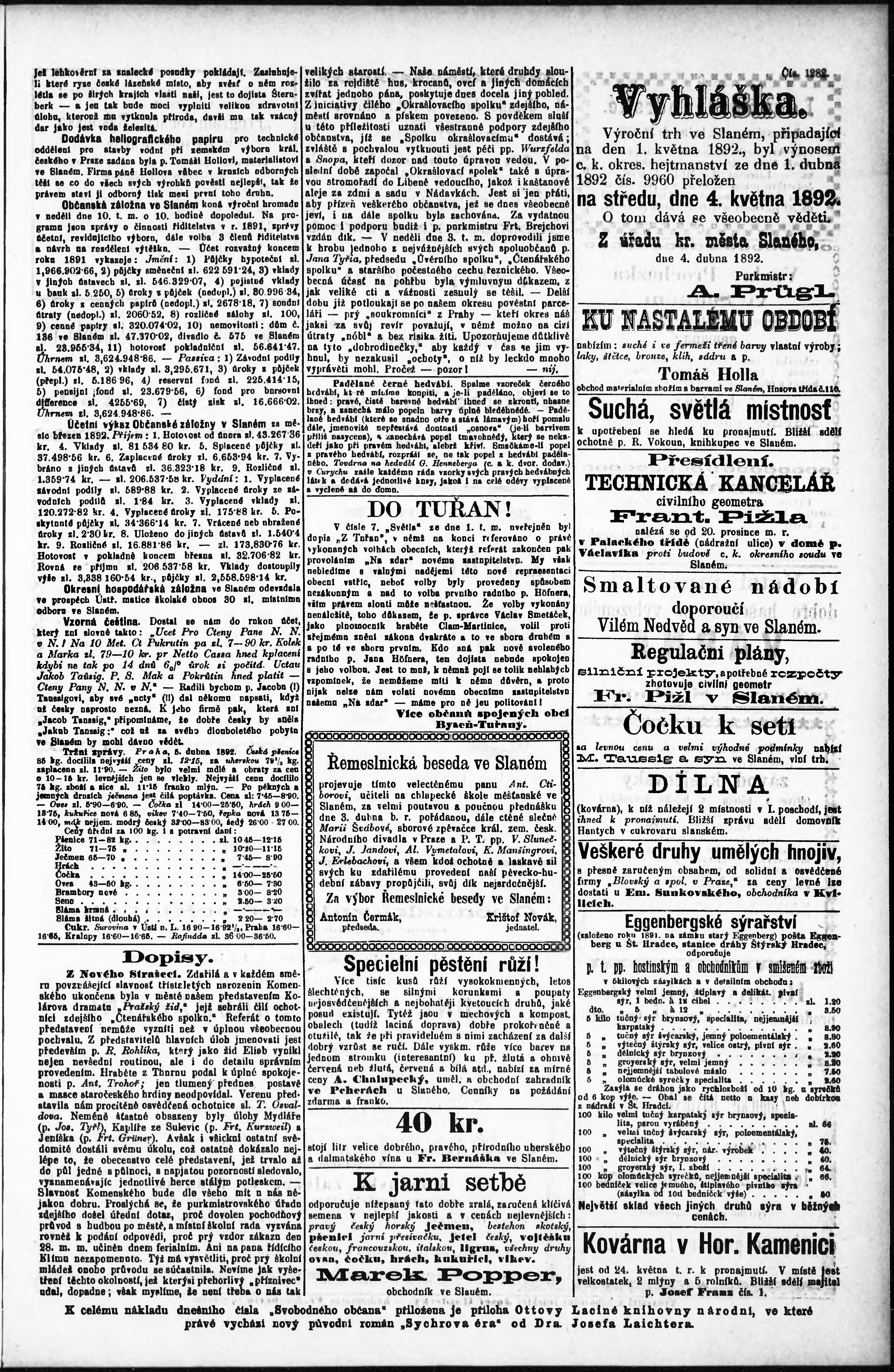 * Datum vydání výtisku: 8.4.1892 Číslo výtisku: 7