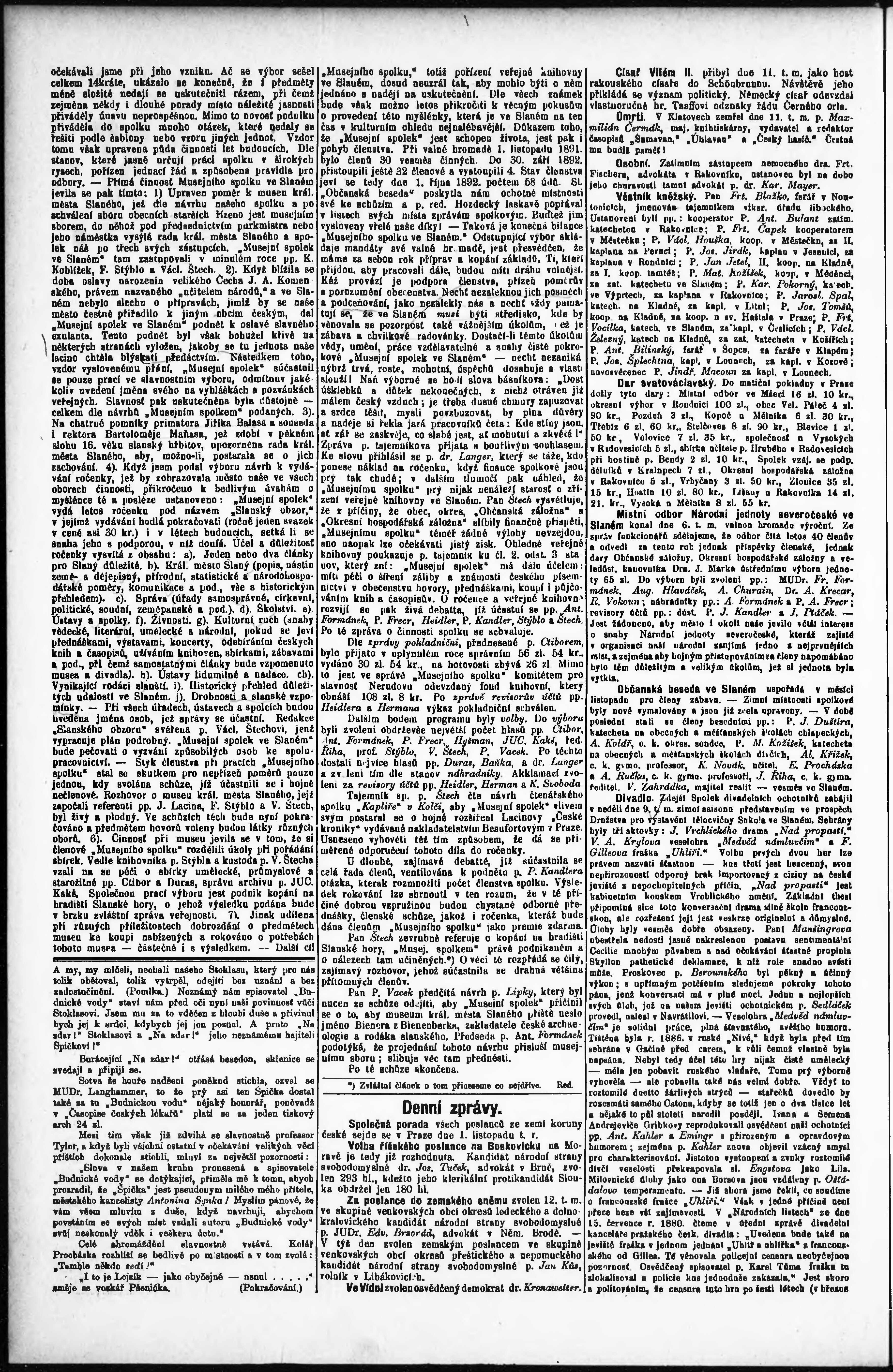 * Datum vydání výtisku: 14.10.1892 Číslo výtisku: 19