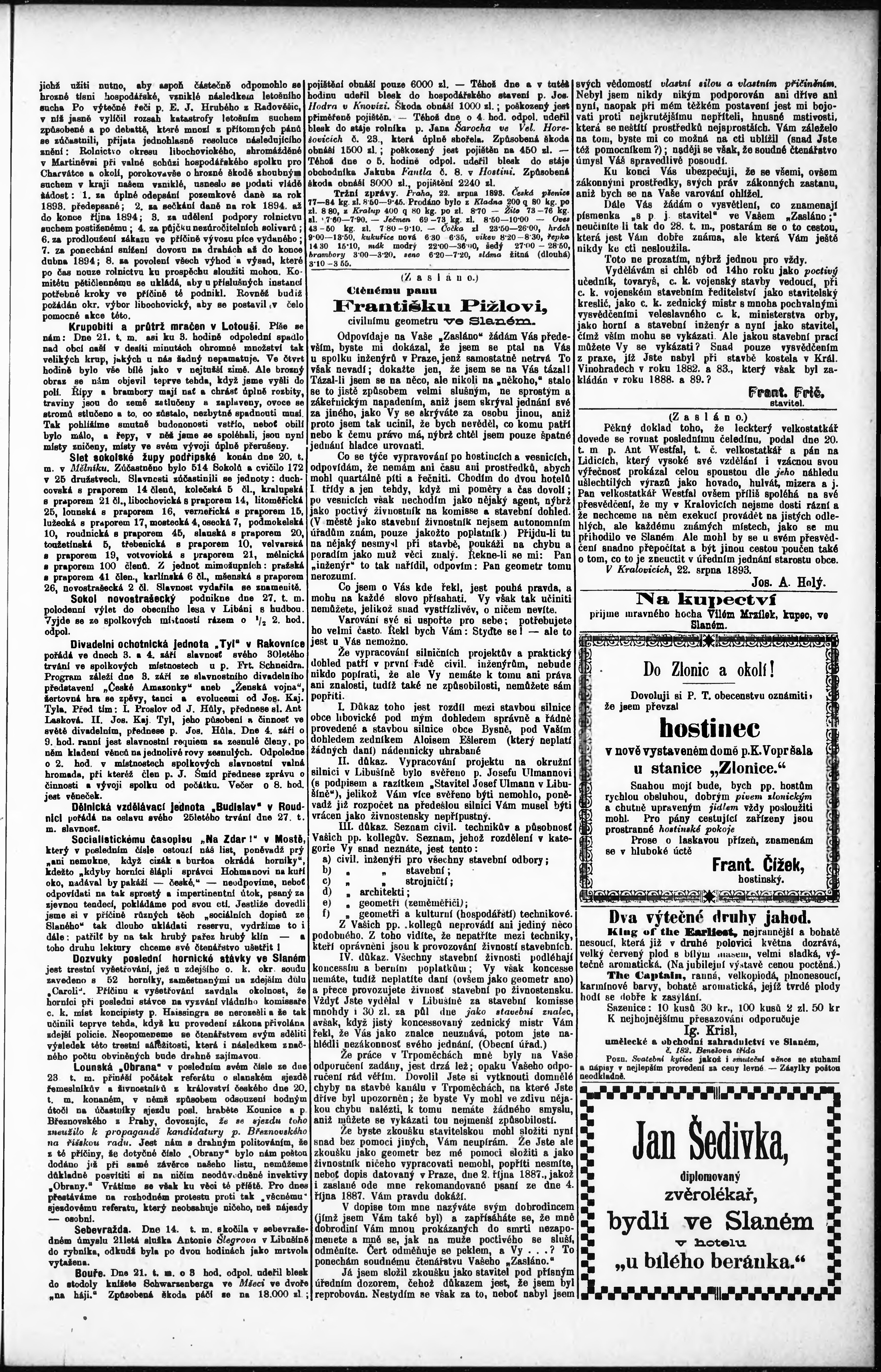 * Datum vydání výtisku: 25.8.1893 Číslo výtisku: 16