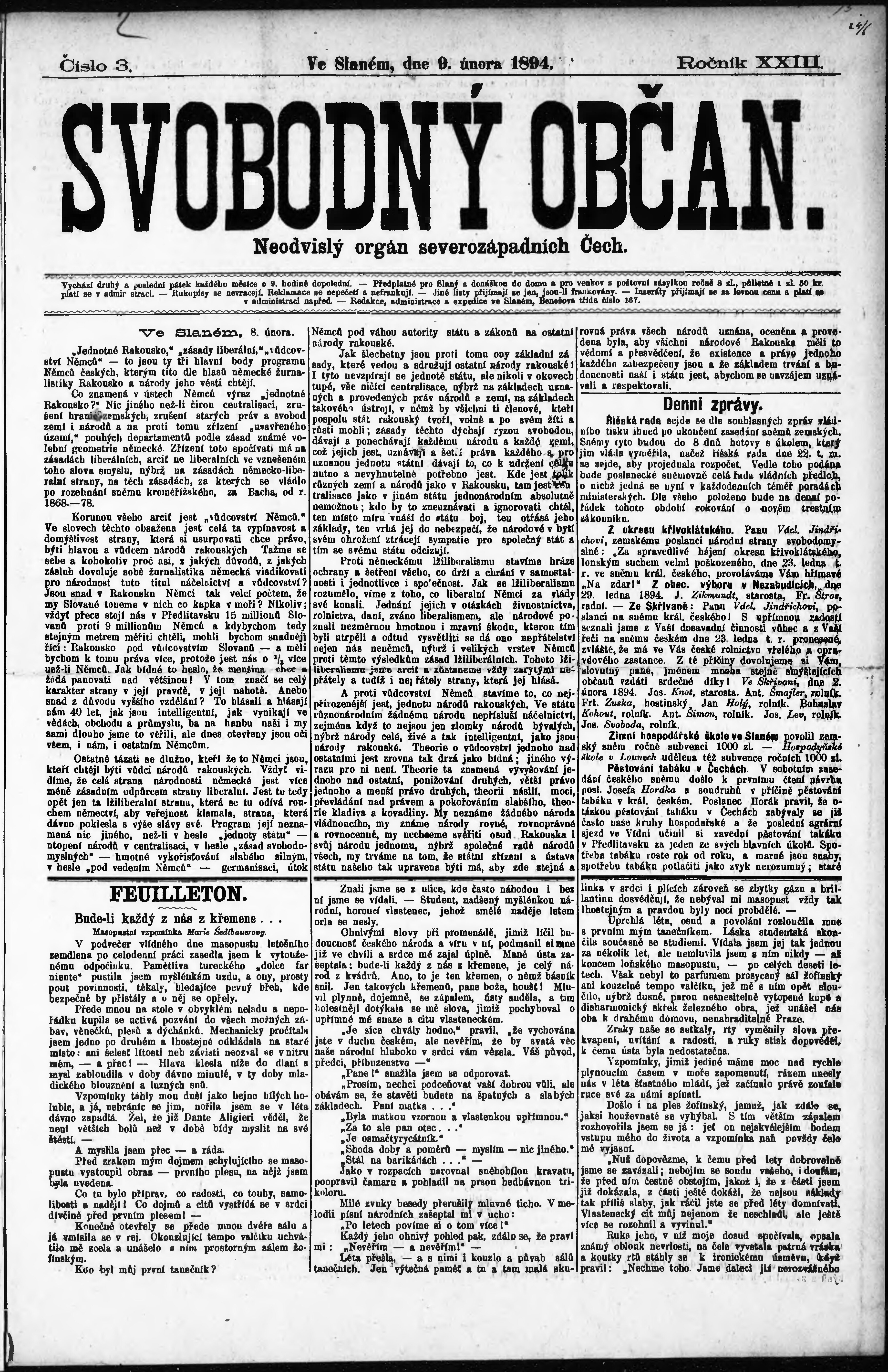 * Datum vydání výtisku: 9.2.1894 Číslo výtisku: 3