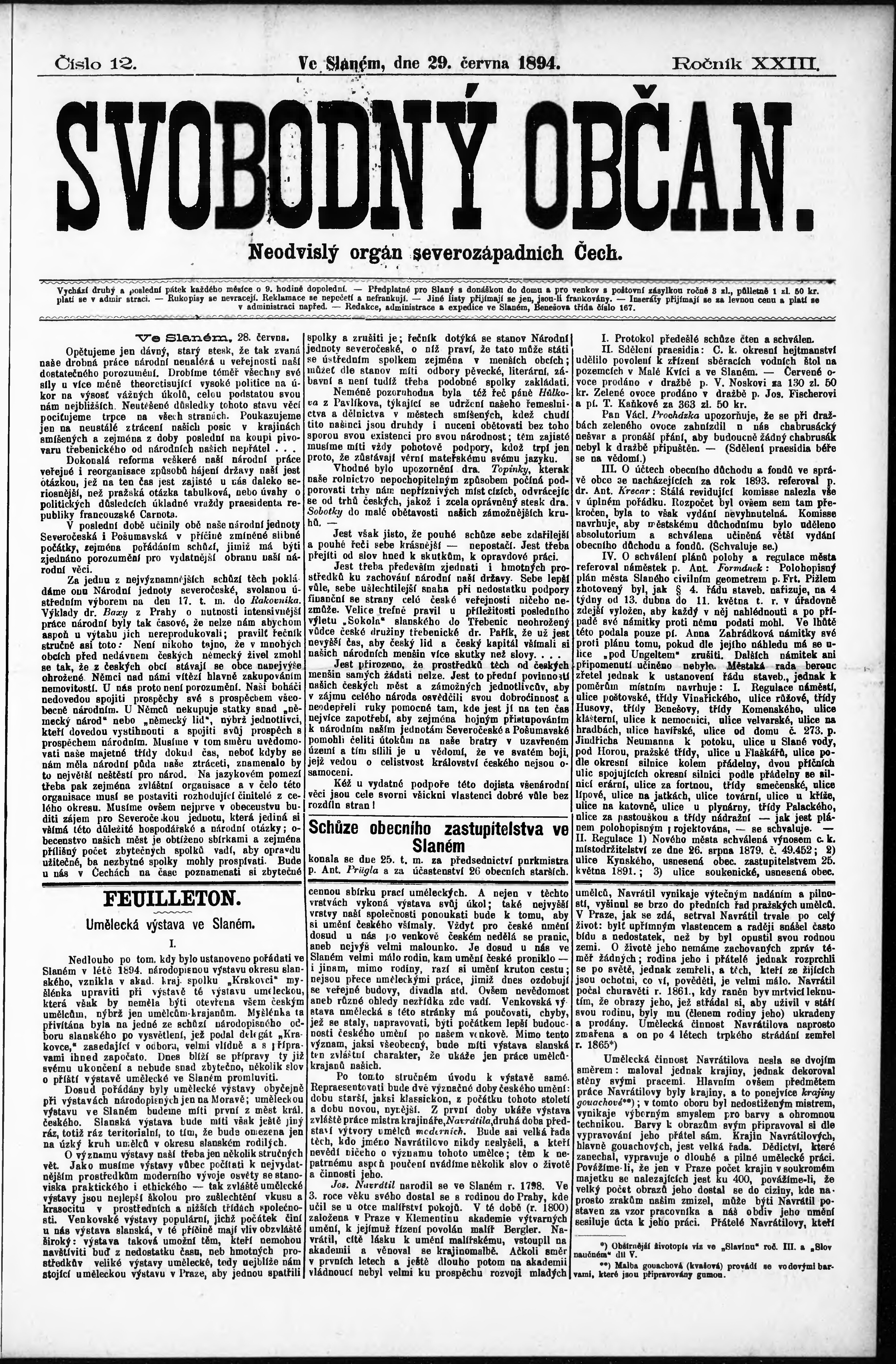 * Datum vydání výtisku: 29.6.1894 Číslo výtisku: 12
