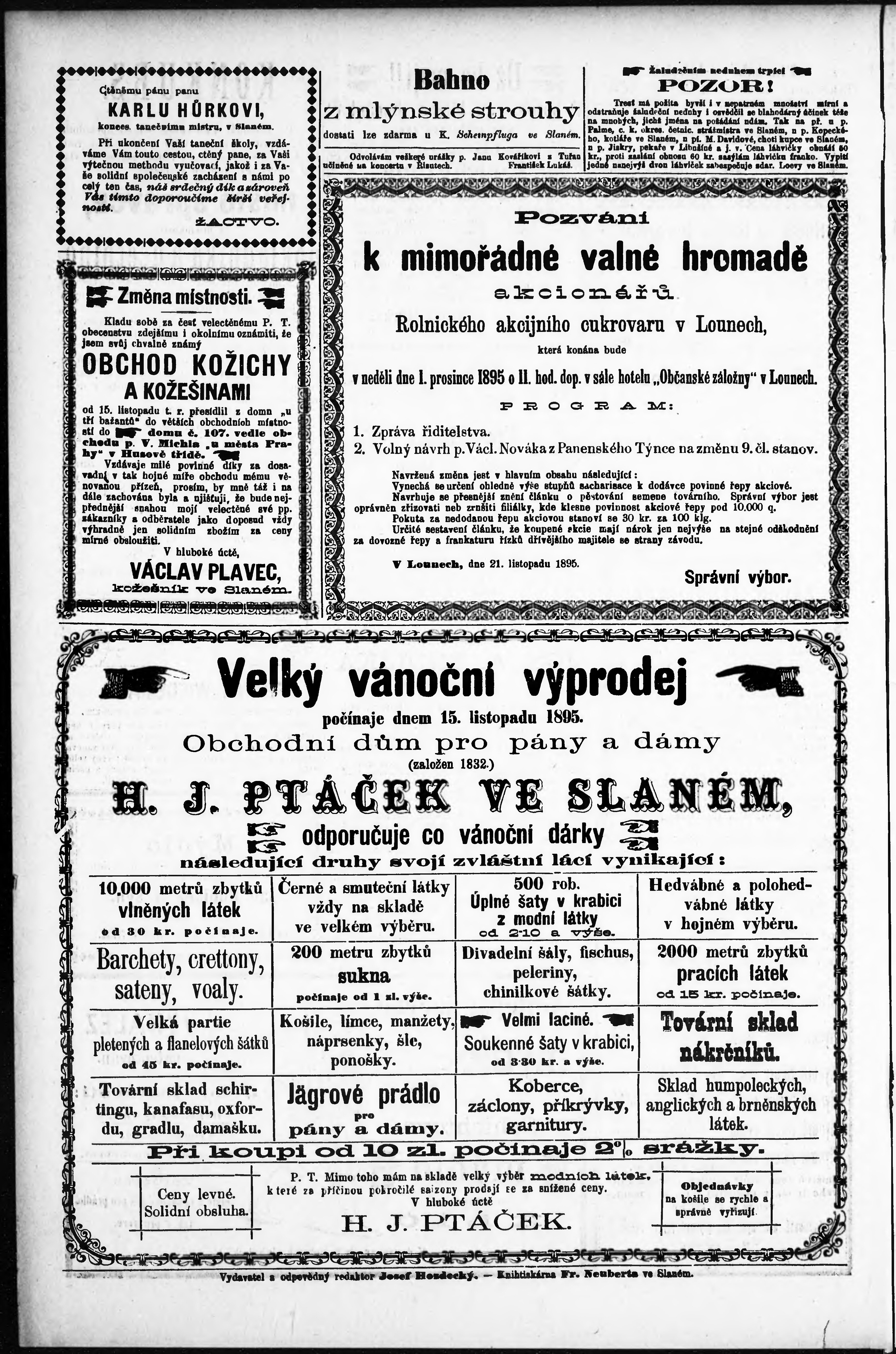 * Datum vydání výtisku: 29.11.1895 Číslo výtisku: 22