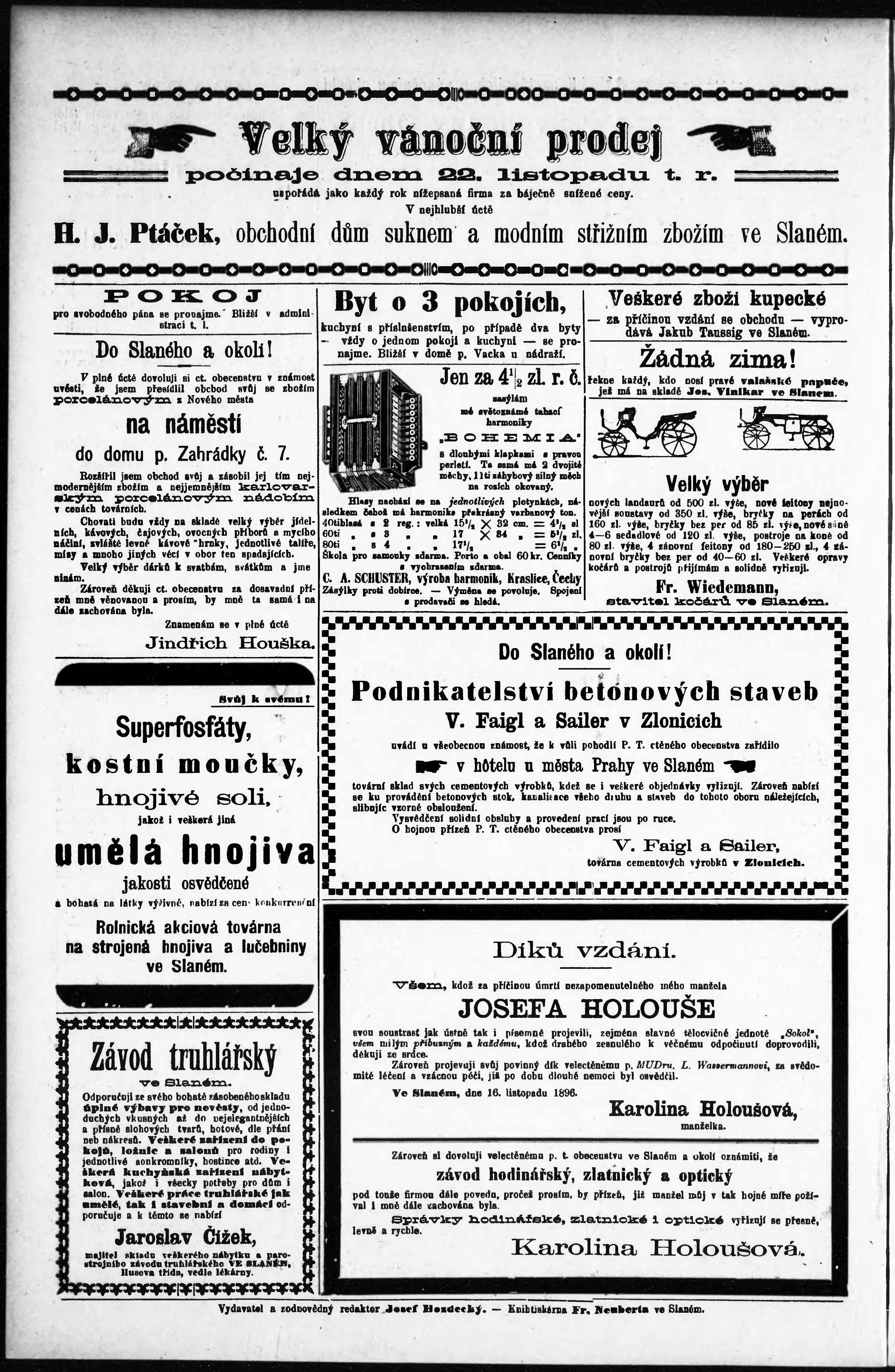 * Datum vydání výtisku: 27.11.1896 Číslo výtisku: 22