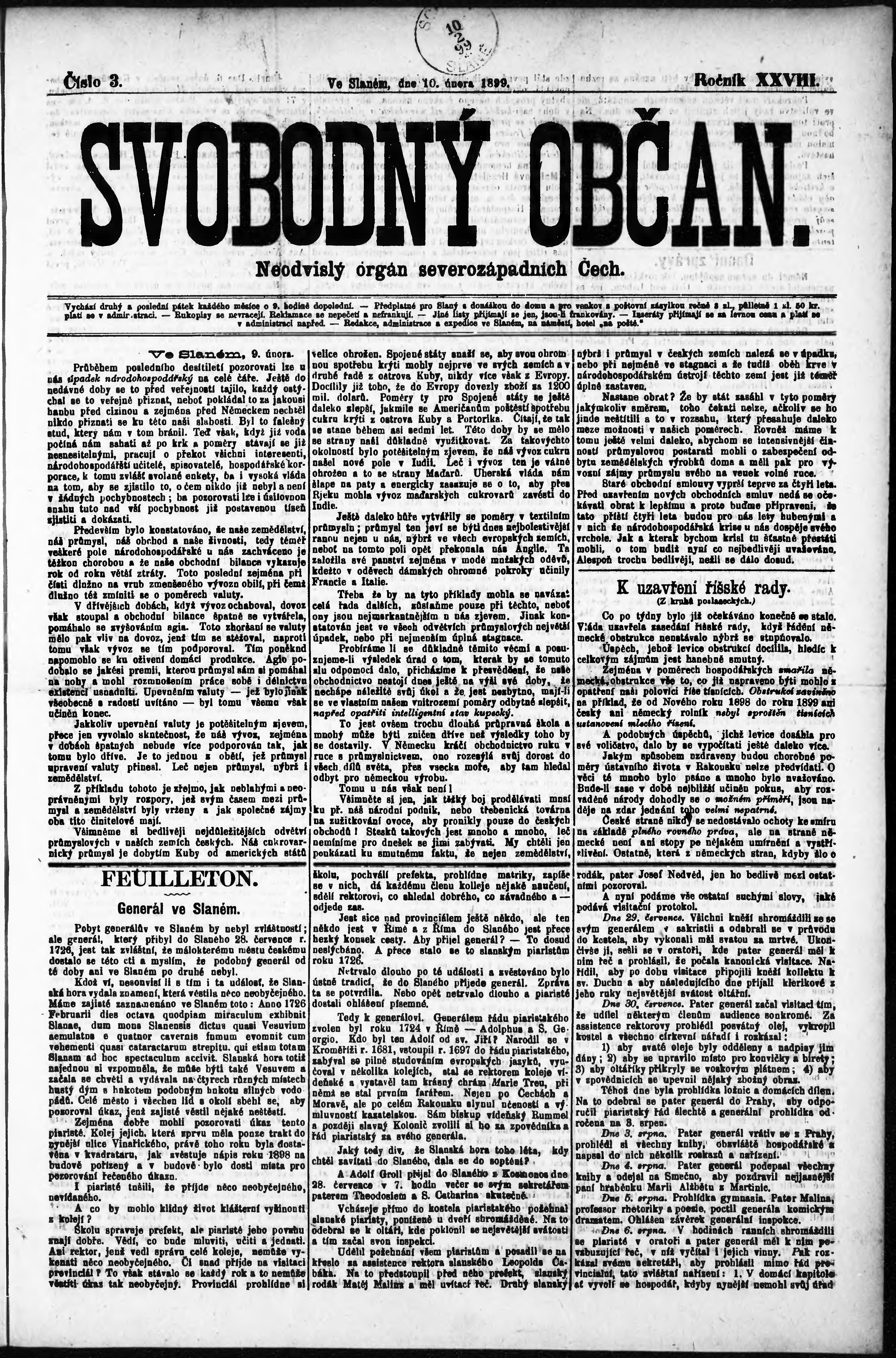 * Datum vydání výtisku: 10.2.1899 Číslo výtisku: 3