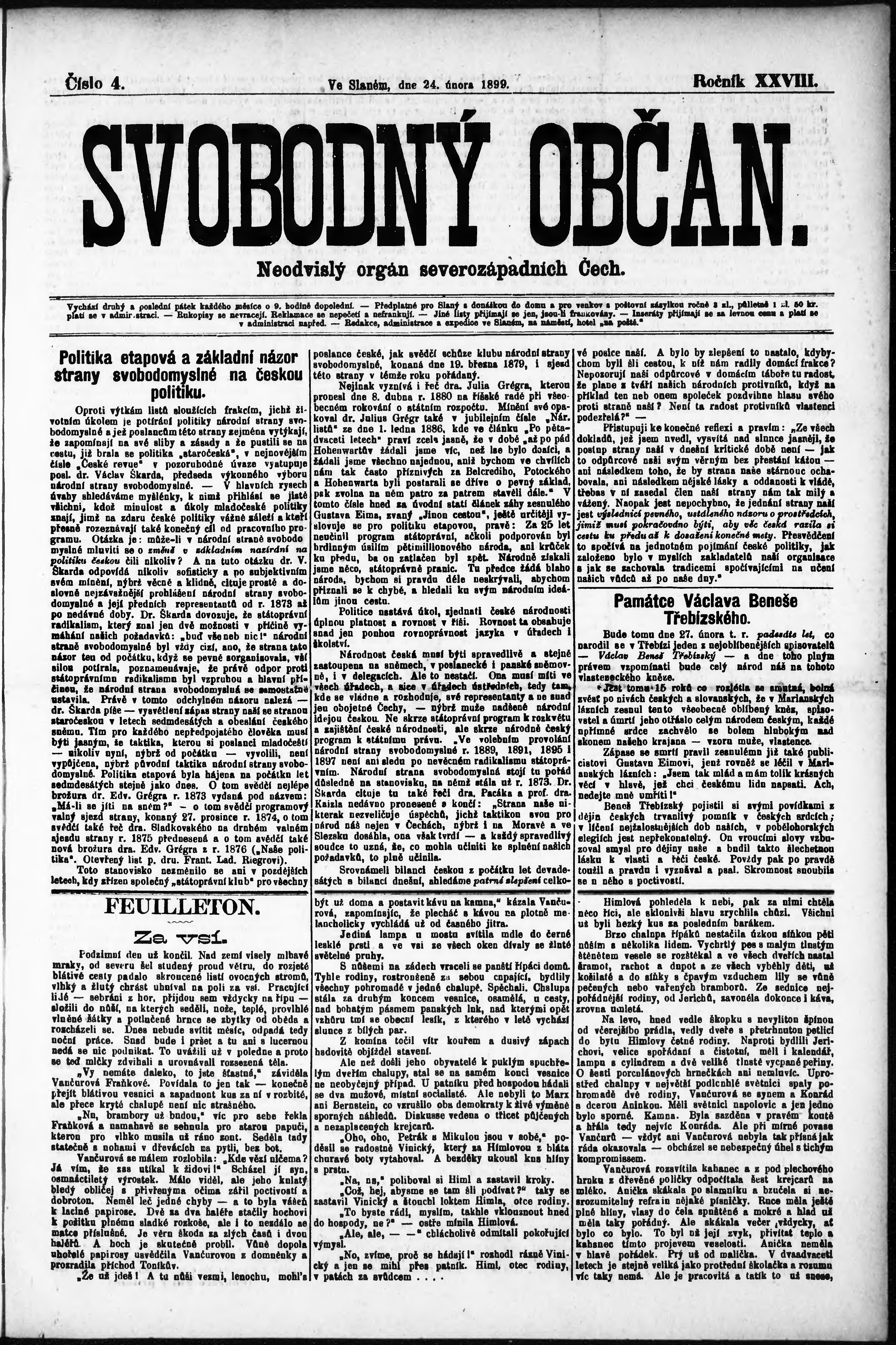 * Datum vydání výtisku: 24.2.1899 Číslo výtisku: 4