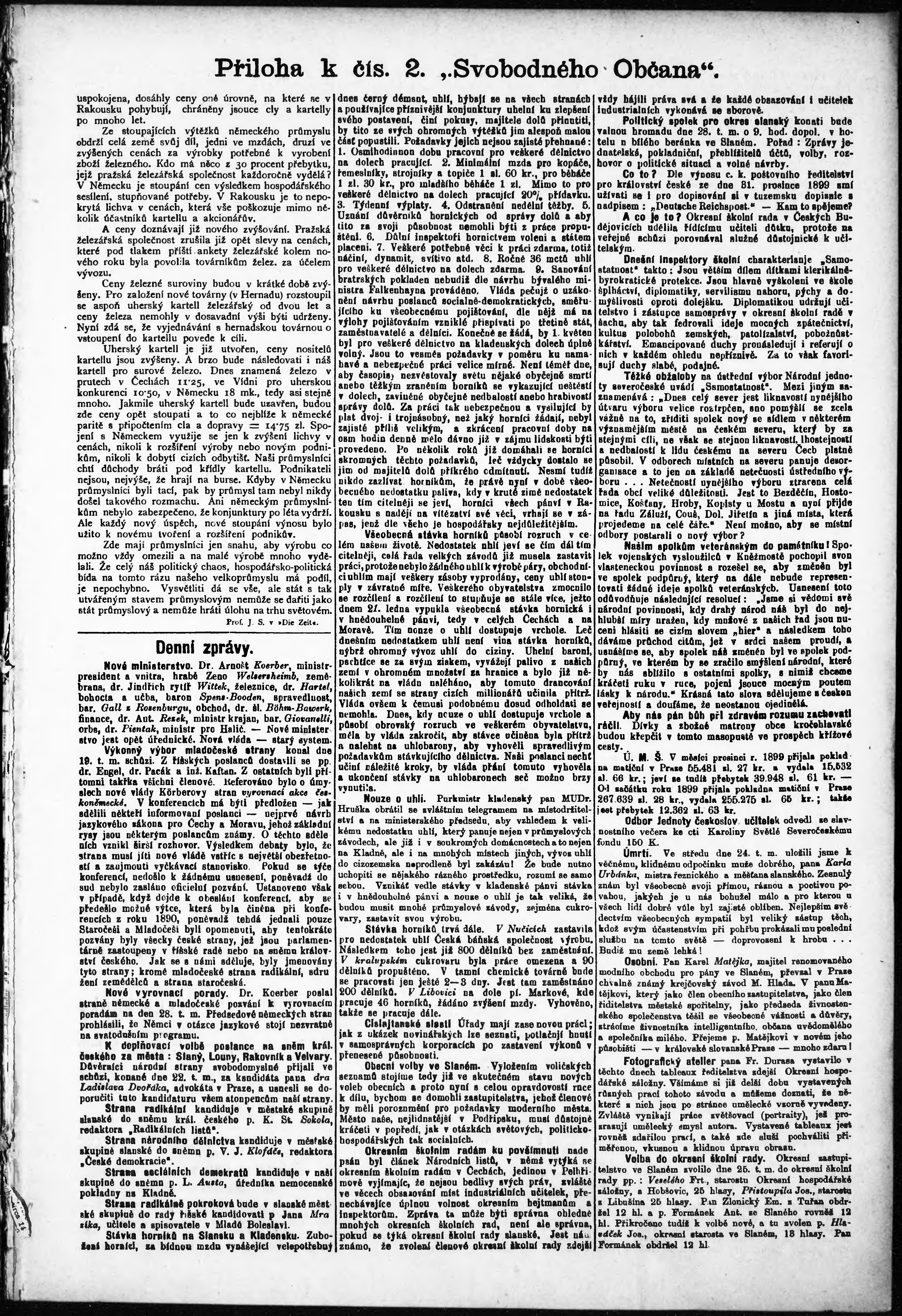 * Datum vydání výtisku: 26.1.1900 Číslo výtisku: 2