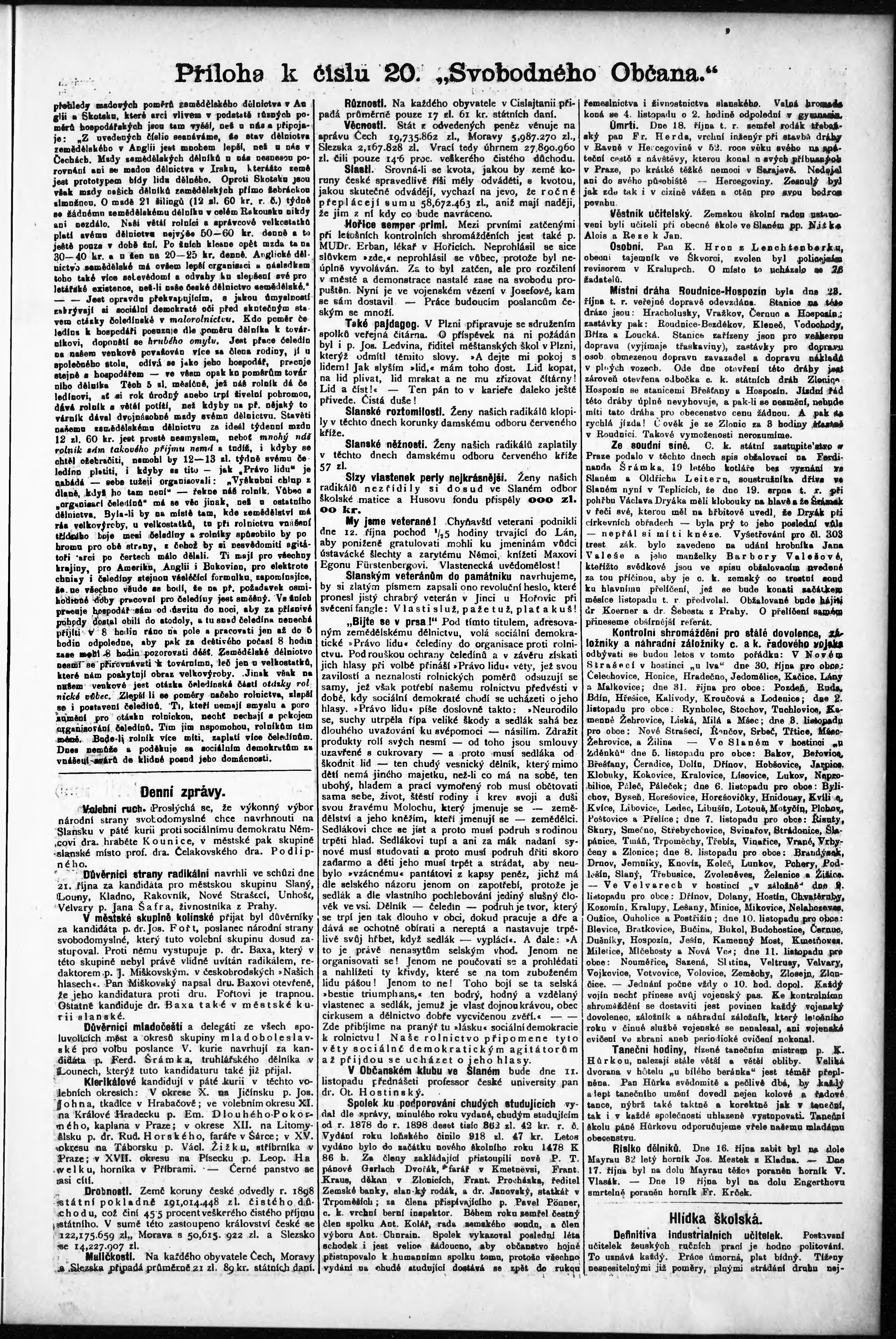 * Datum vydání výtisku: 26.10.1900 Číslo výtisku: 20