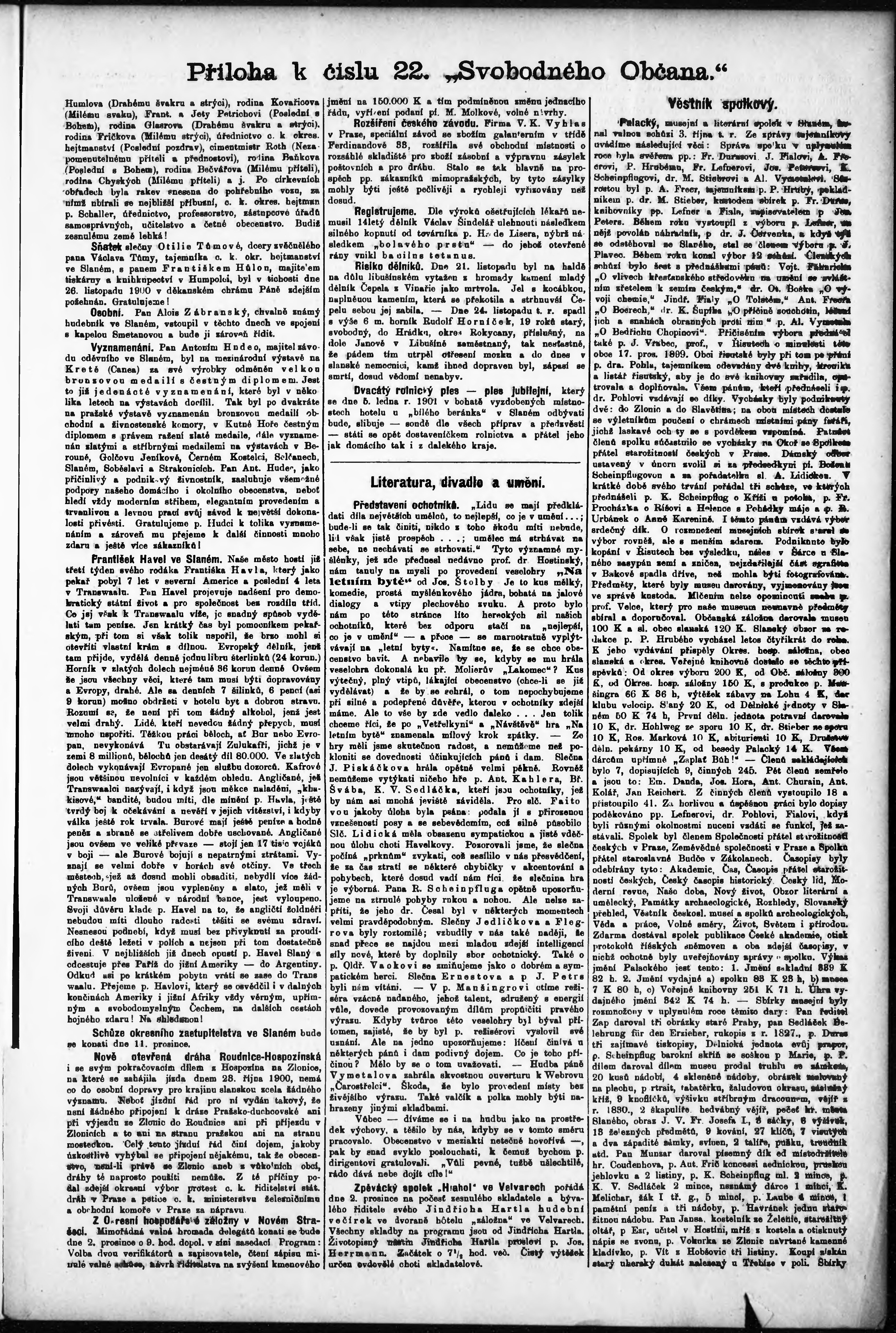 * Datum vydání výtisku: 30.11.1900 Číslo výtisku: 22