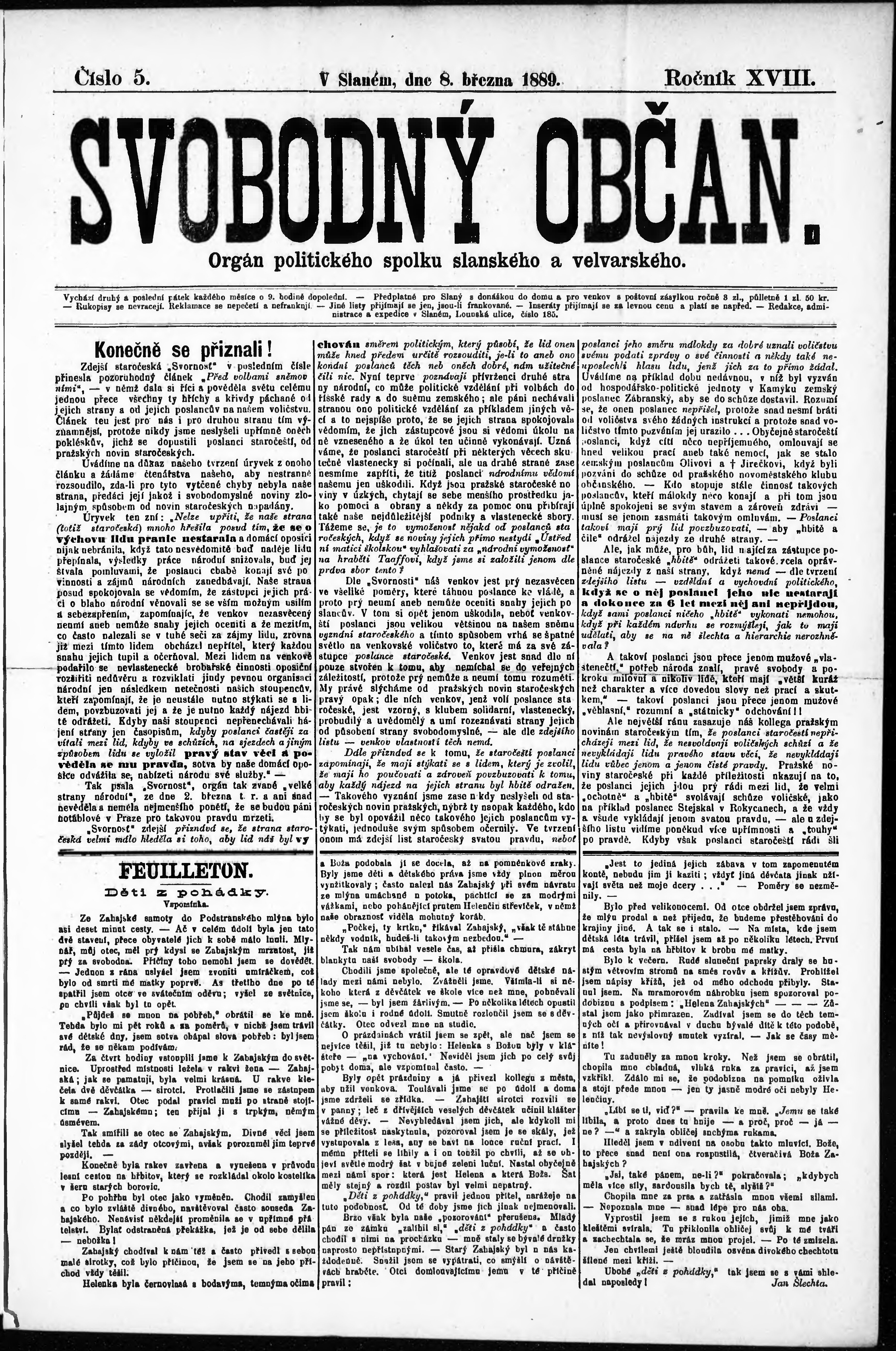 * Datum vydání výtisku: 8.3.1889 Číslo výtisku: 5