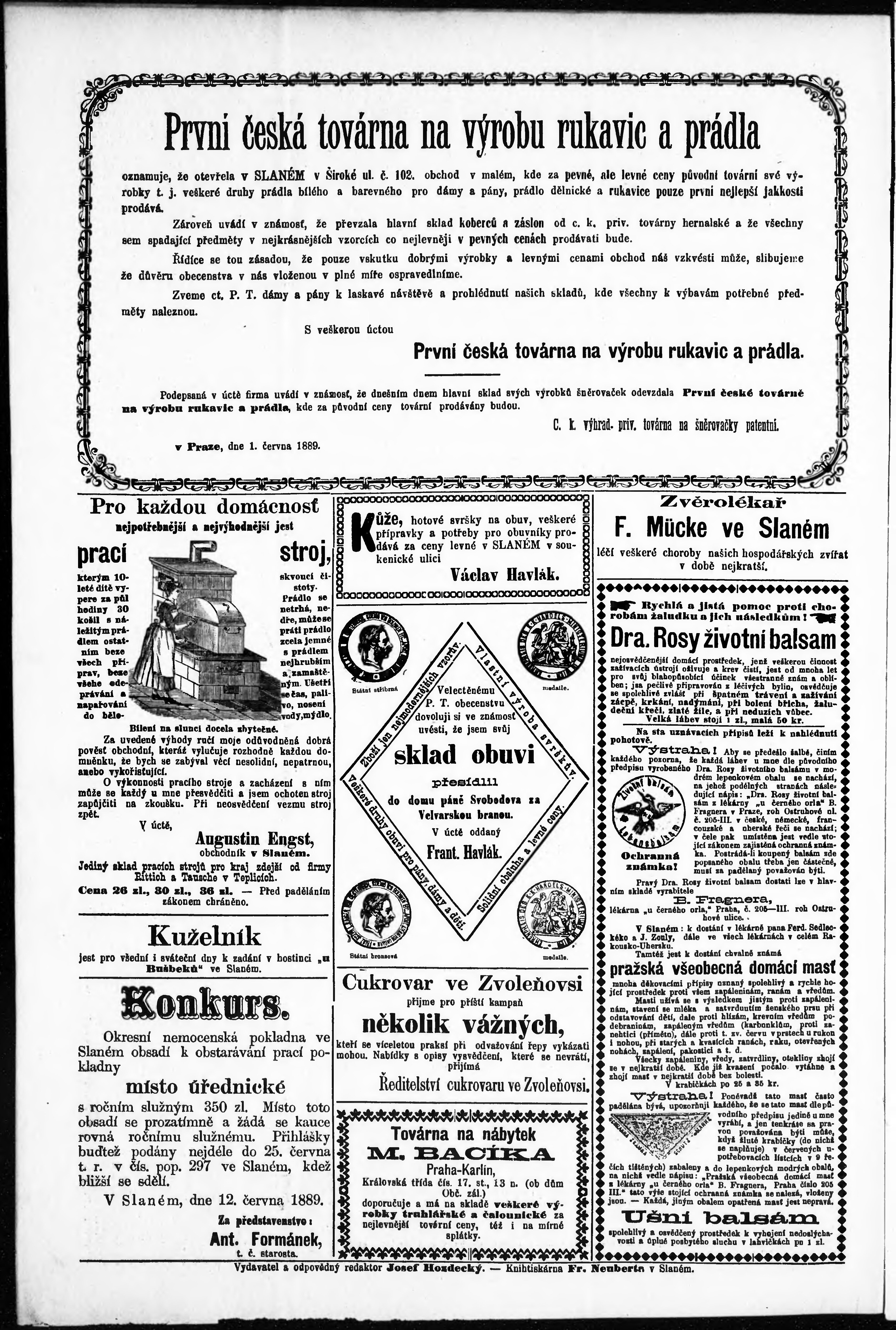 * Datum vydání výtisku: 14.6.1889 Číslo výtisku: 11