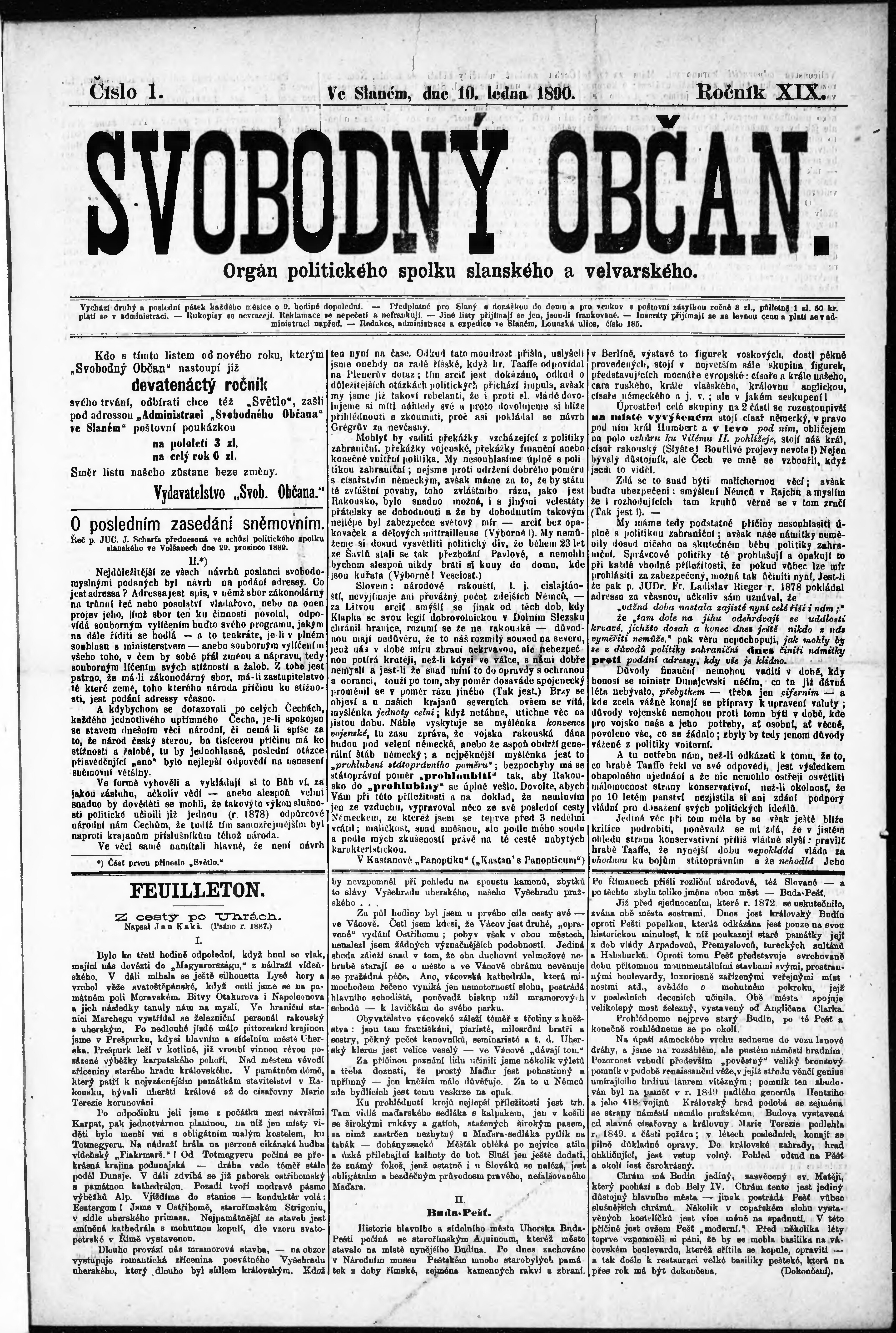 * Datum vydání výtisku: 10.1.1890 Číslo výtisku: 1