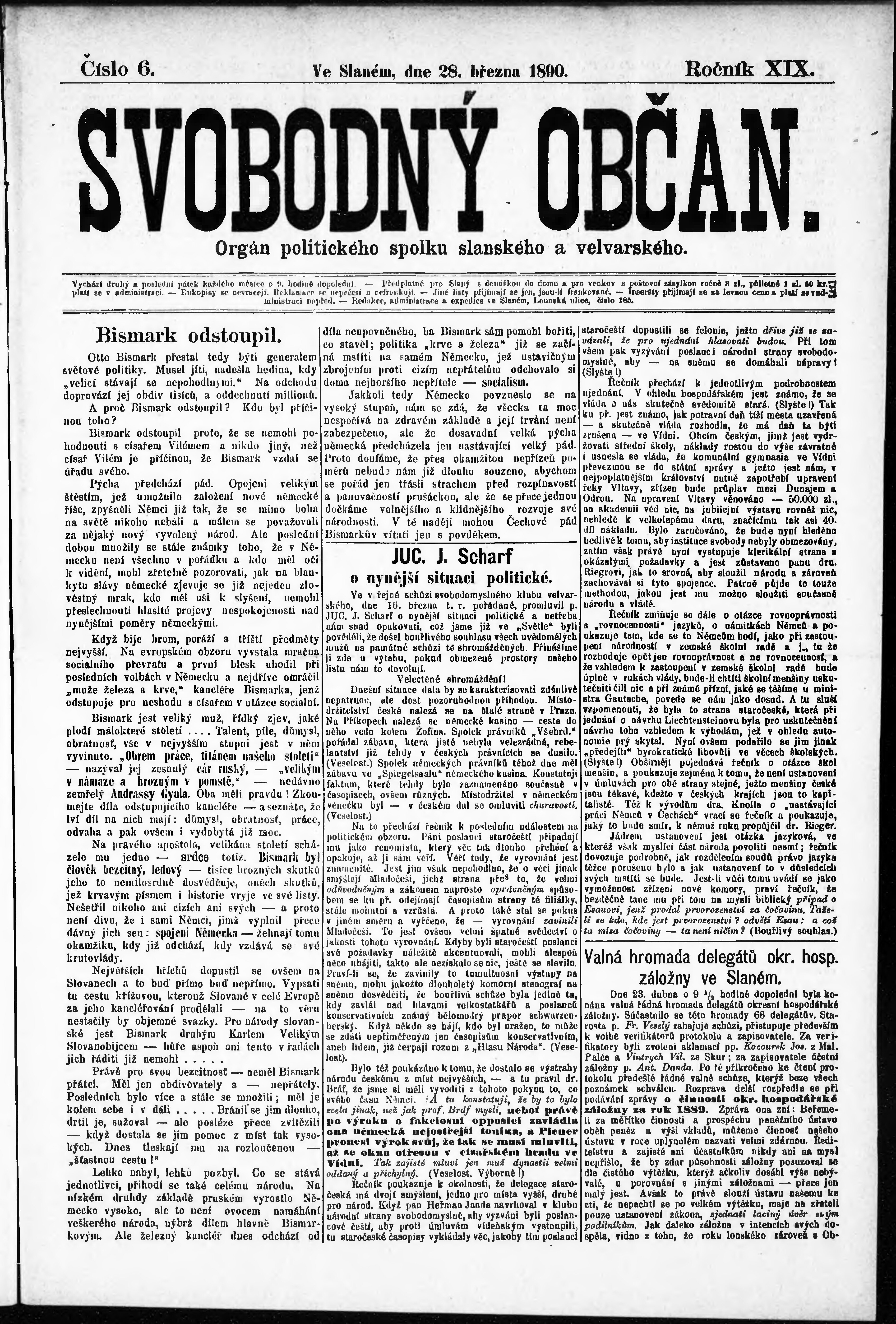 * Datum vydání výtisku: 28.3.1890 Číslo výtisku: 6
