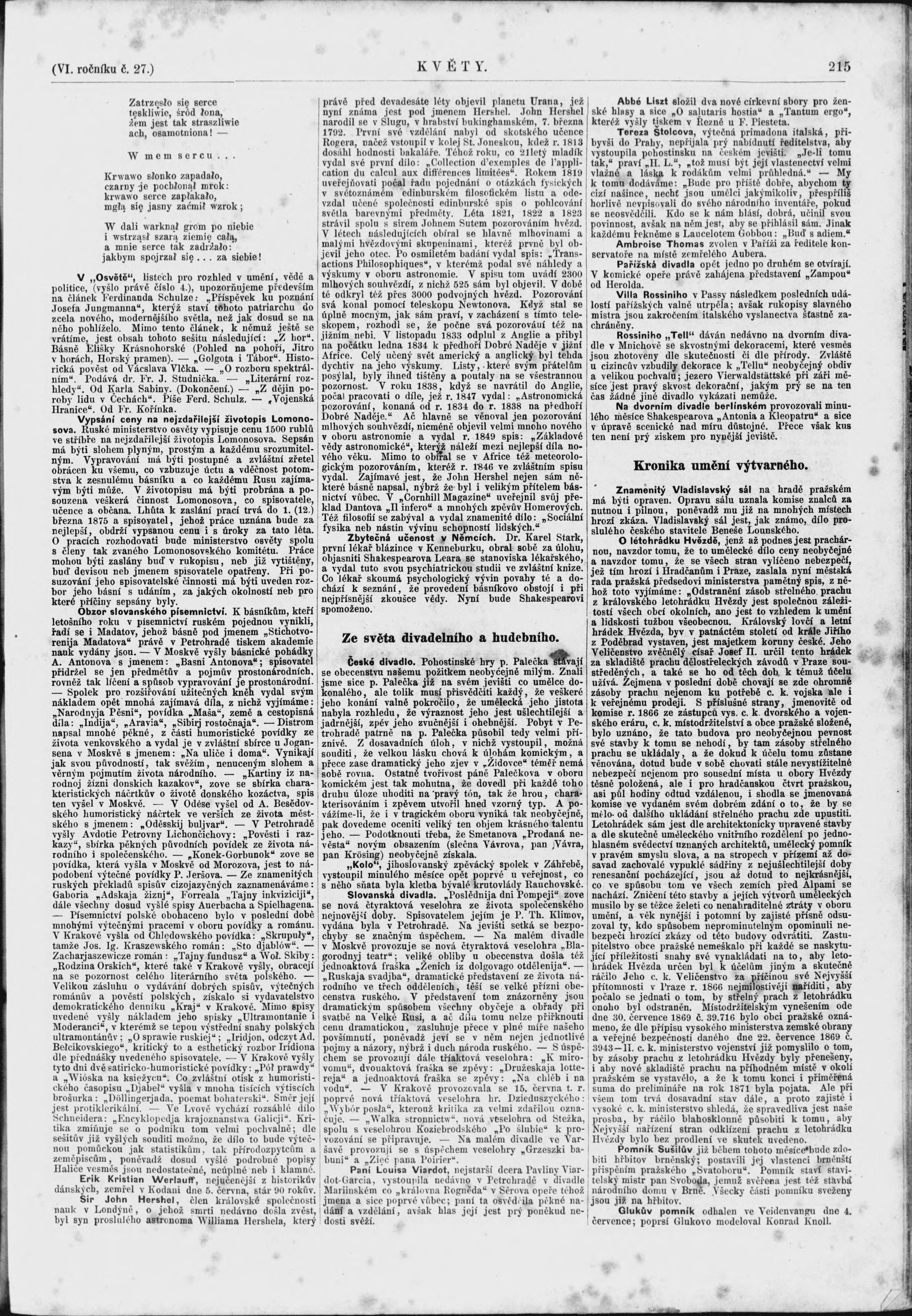 * Datum vydání ročníku: 1871 Číslo ročníku: 6
