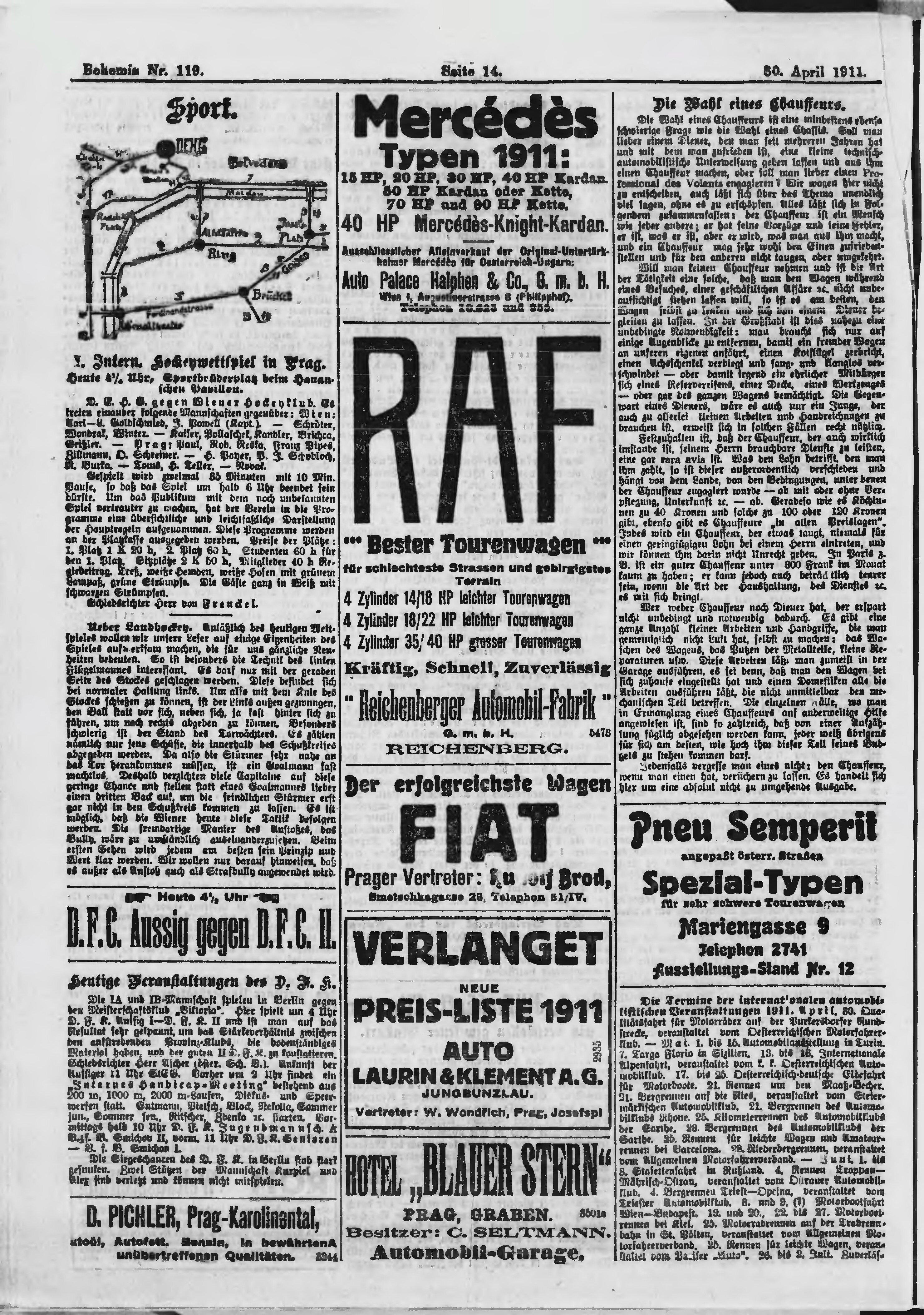 * Datum vydání výtisku: 30.4.1911 Číslo výtisku: 119 Poznámky k výtisku: ranní vydání
