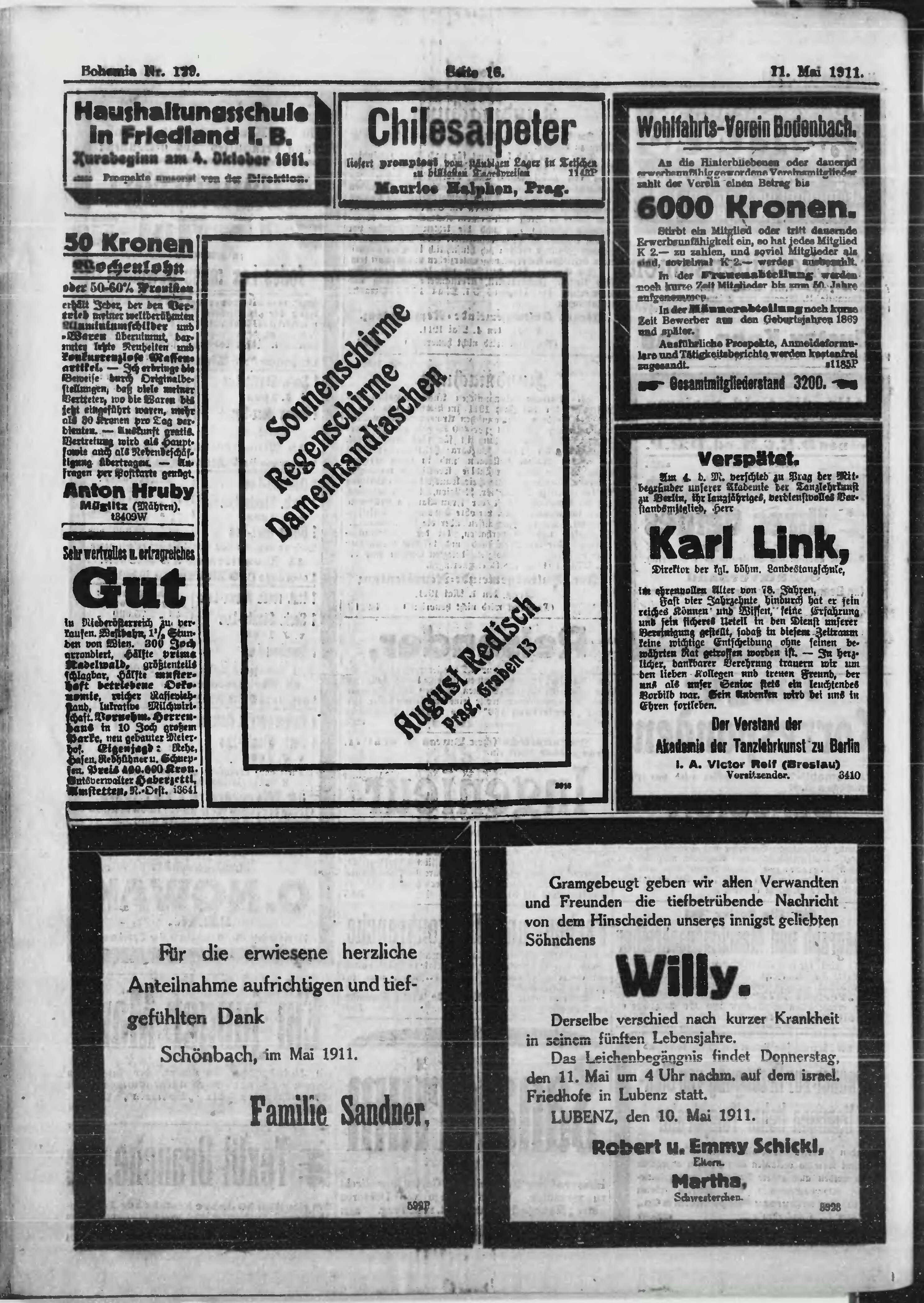 * Datum vydání výtisku: 11.5.1911 Číslo výtisku: 129 Poznámky k výtisku: ranní vydání