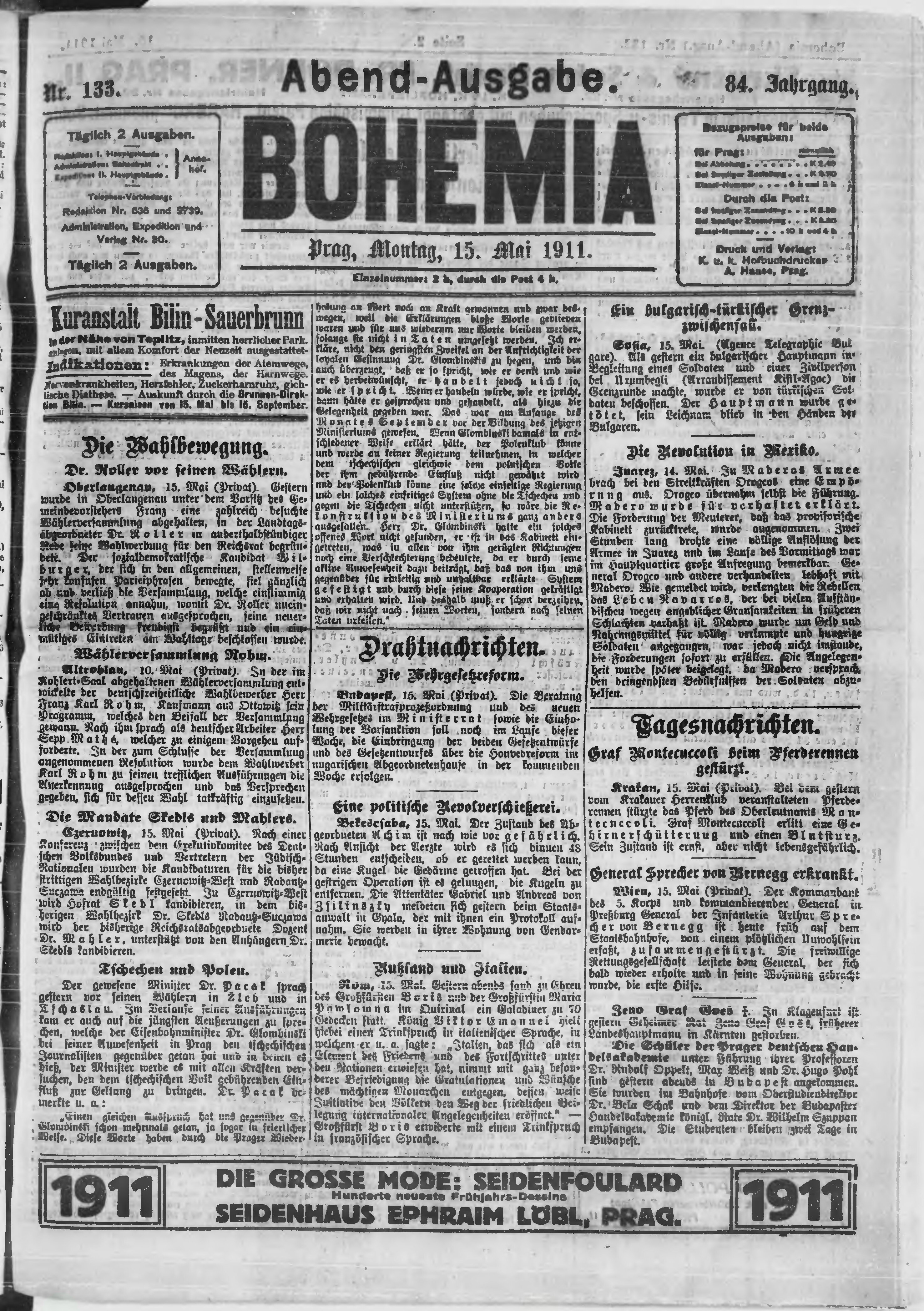 * Datum vydání výtisku: 15.5.1911 Číslo výtisku: 132 Poznámky k výtisku: večerní vydání