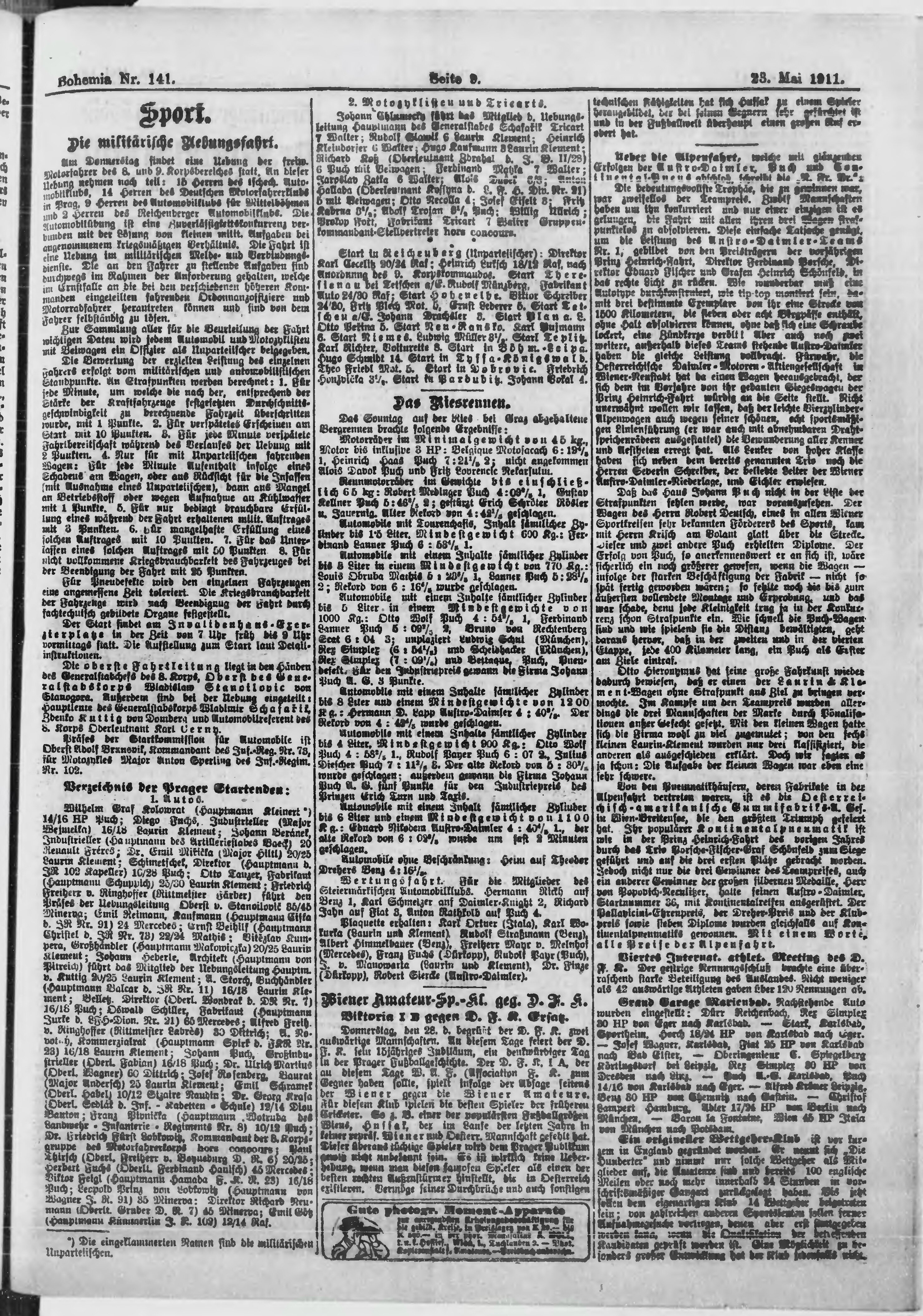 * Datum vydání výtisku: 23.5.1911 Číslo výtisku: 141 Poznámky k výtisku: ranní vydání