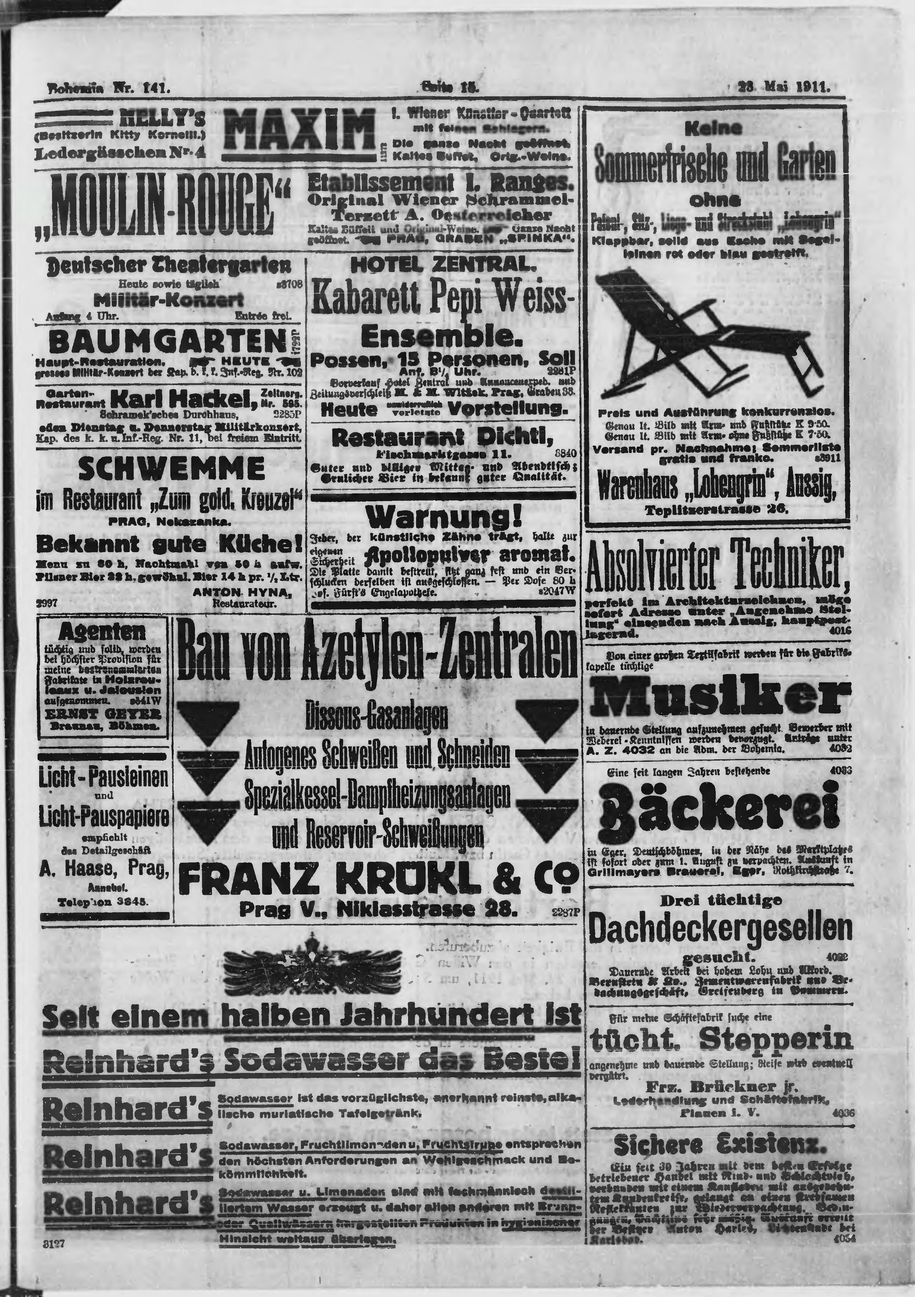 * Datum vydání výtisku: 23.5.1911 Číslo výtisku: 141 Poznámky k výtisku: ranní vydání