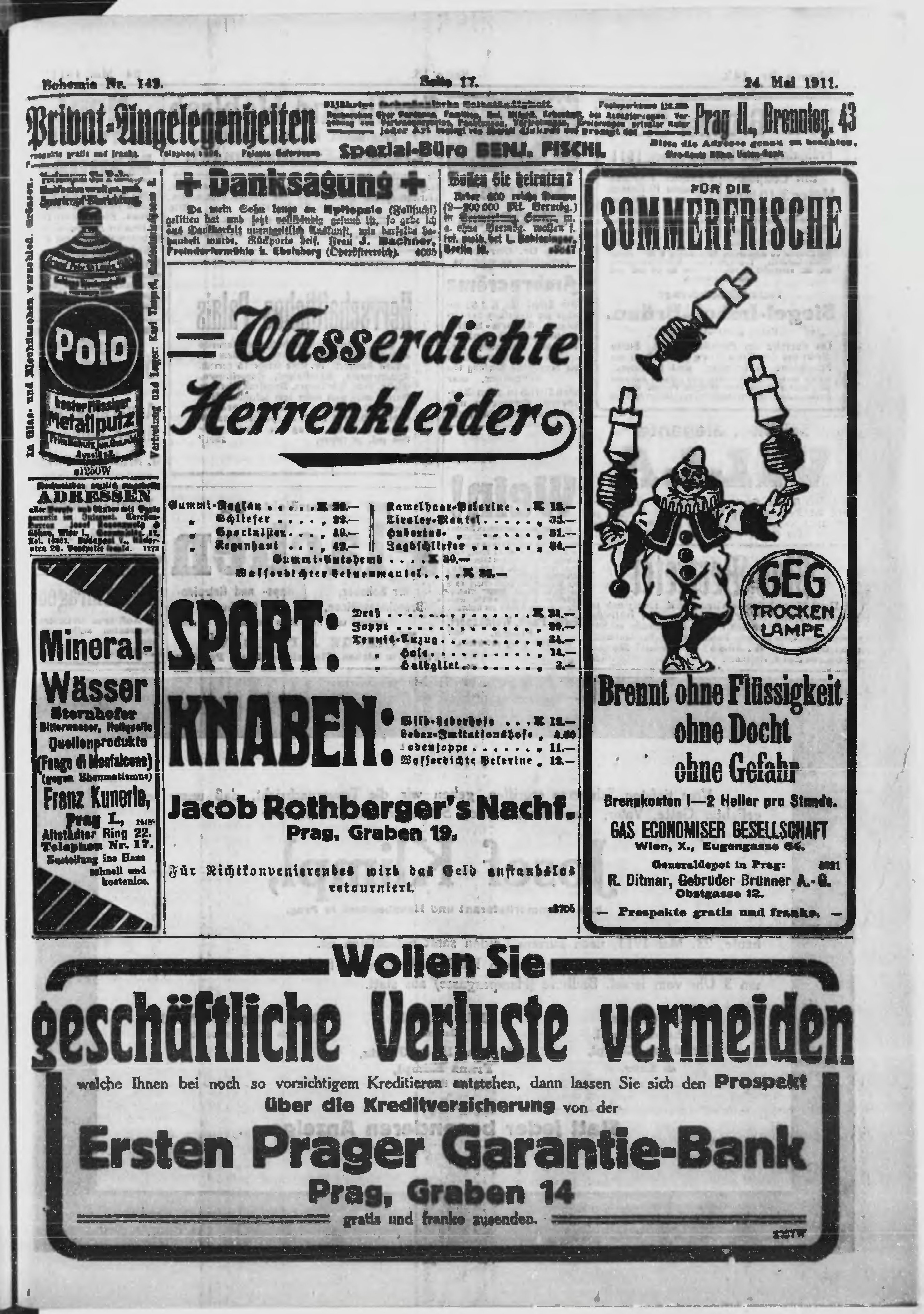 * Datum vydání výtisku: 24.5.1911 Číslo výtisku: 142 Poznámky k výtisku: ranní vydání