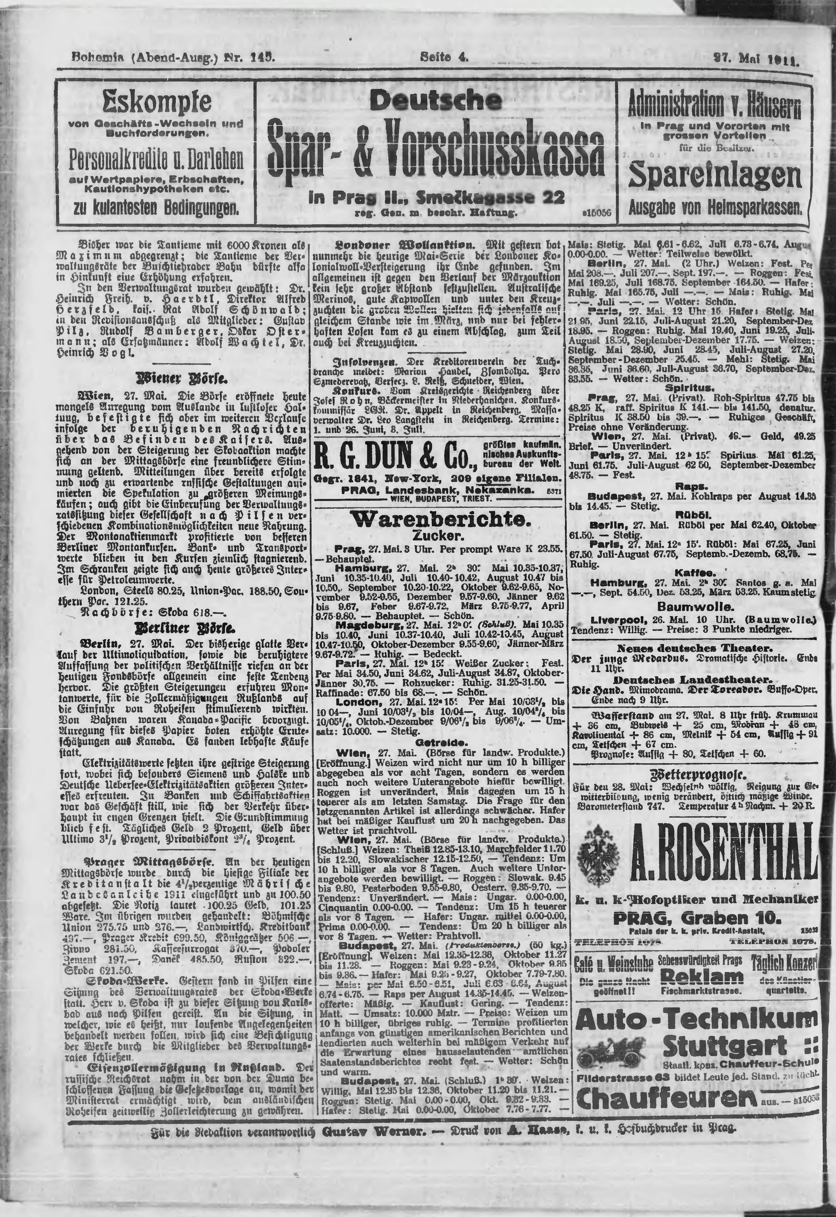 * Datum vydání výtisku: 27.5.1911 Číslo výtisku: 145 Poznámky k výtisku: večerní vydání