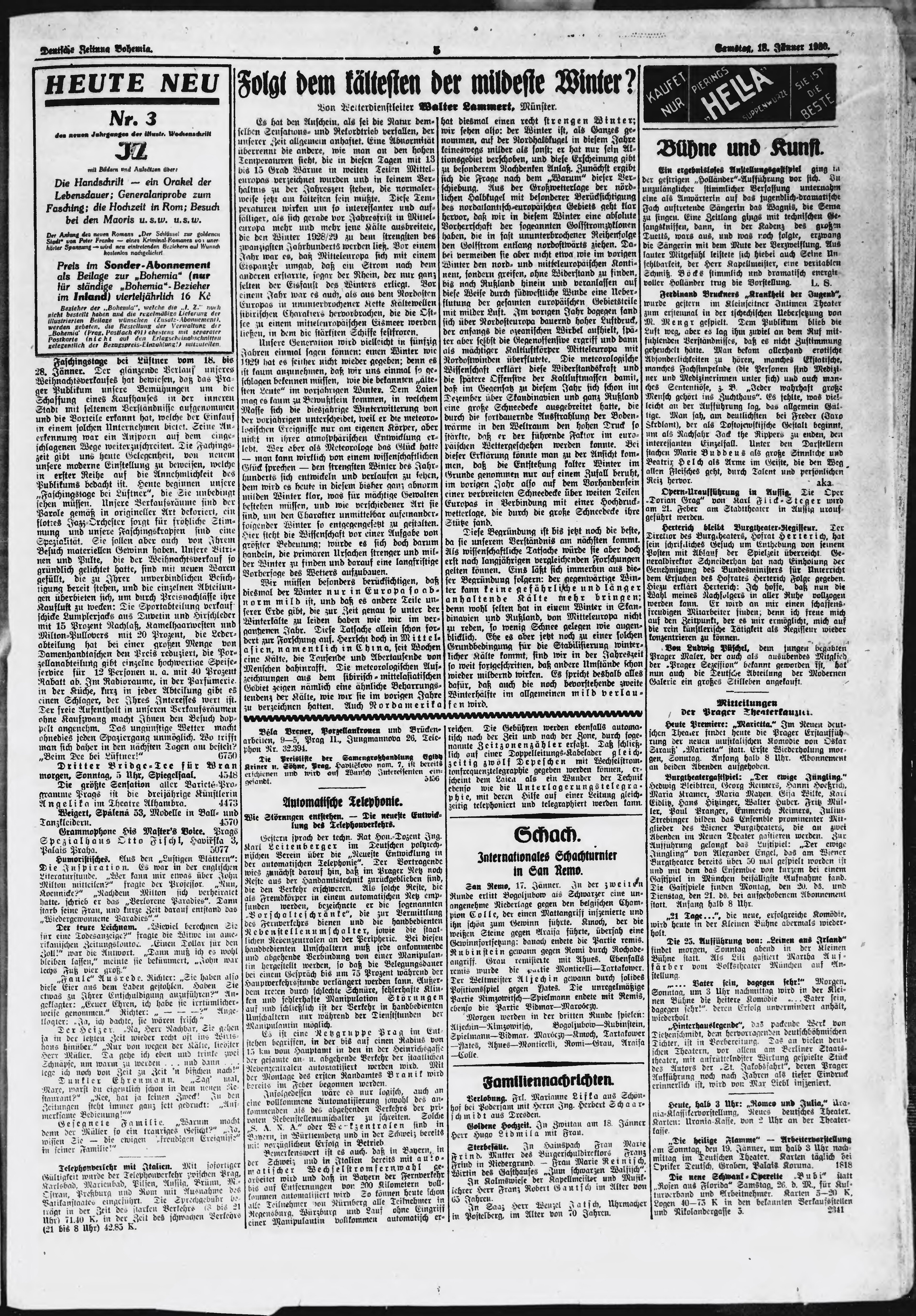 * Datum vydání výtisku: 18.1.1930 Číslo výtisku: 16 Poznámky k výtisku: ranní vydání;