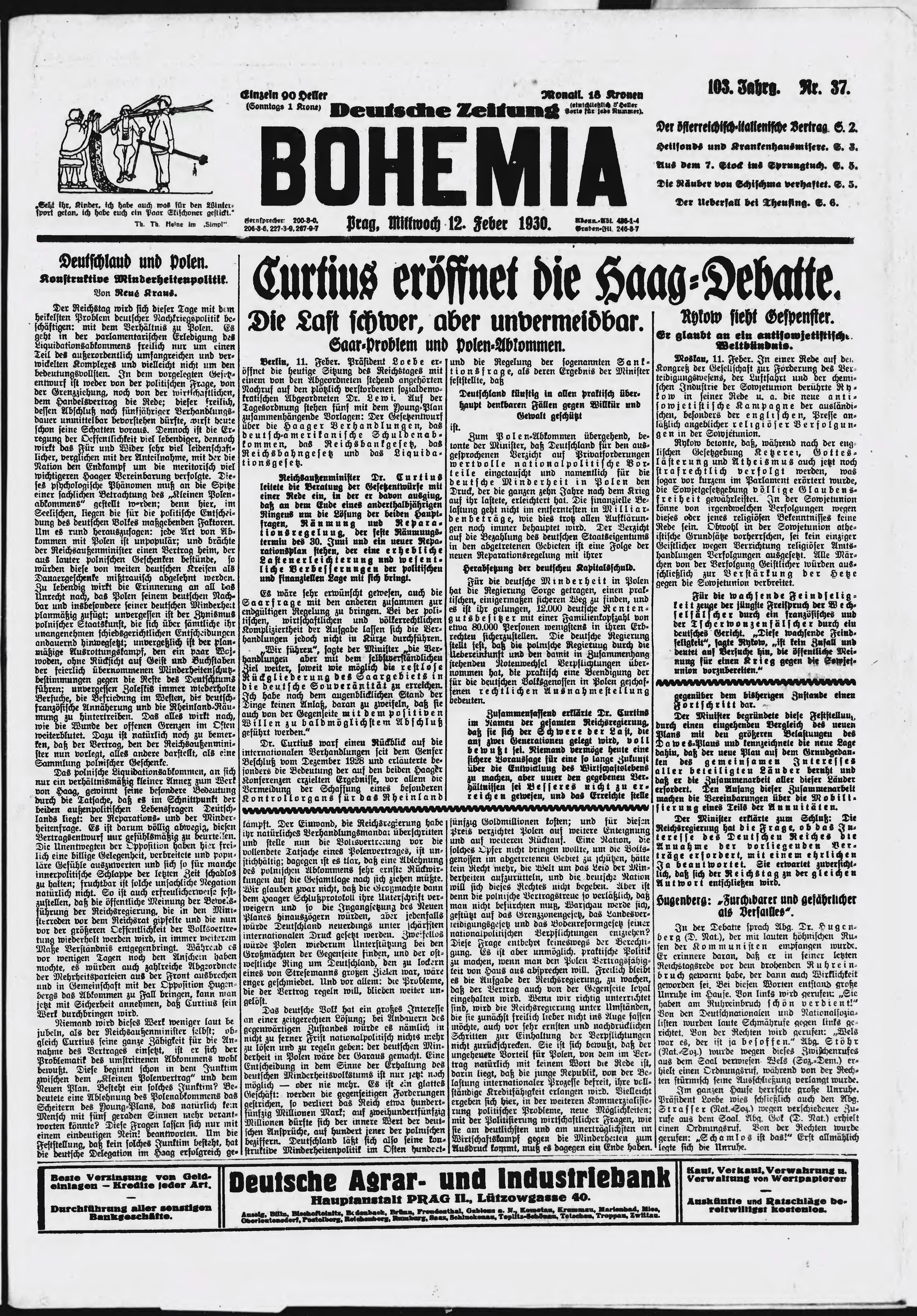 * Datum vydání výtisku: 12.2.1930 Číslo výtisku: 37 Poznámky k výtisku: ranní vydání;