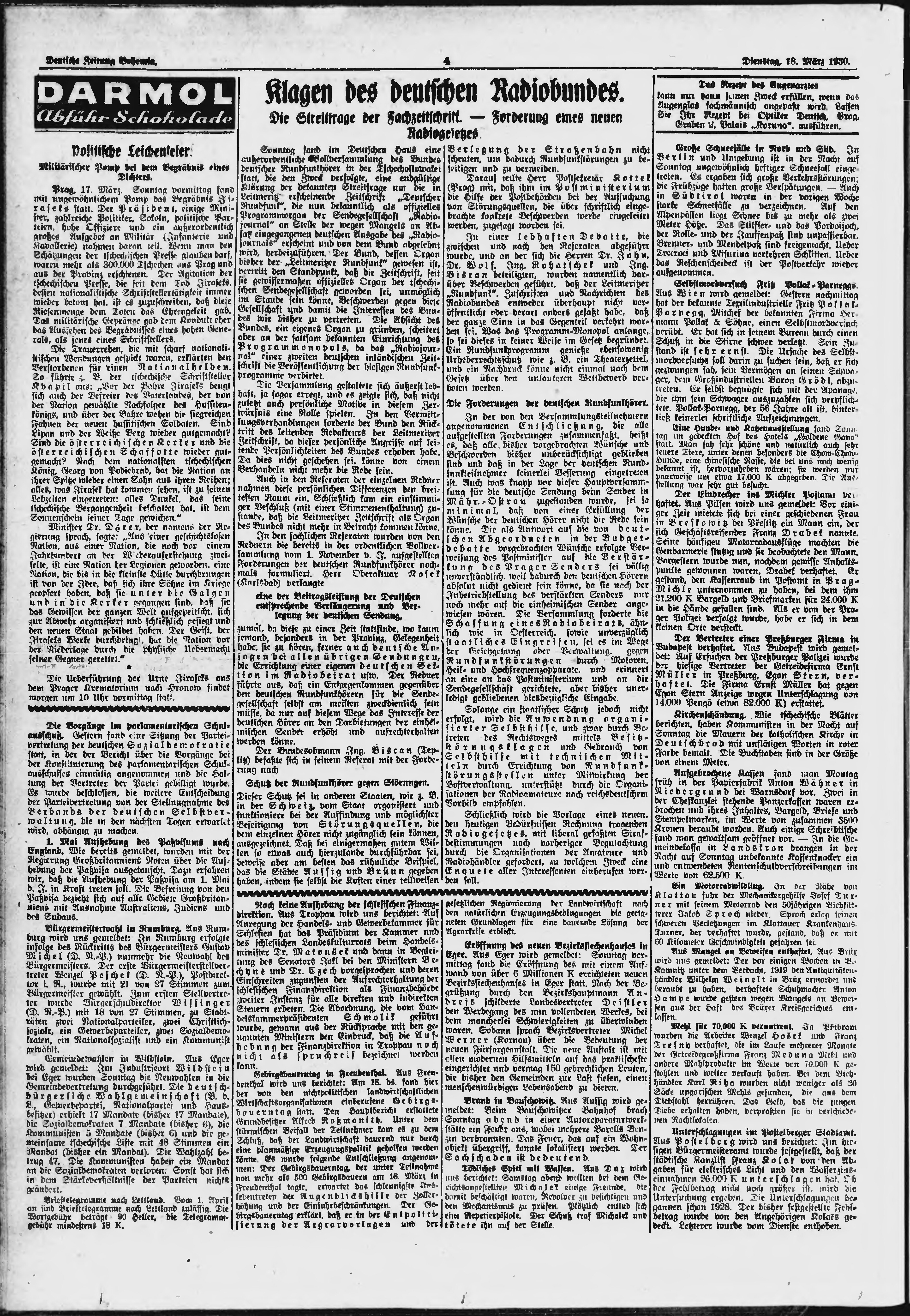 * Datum vydání výtisku: 18.3.1930 Číslo výtisku: 66 Poznámky k výtisku: ranní vydání;