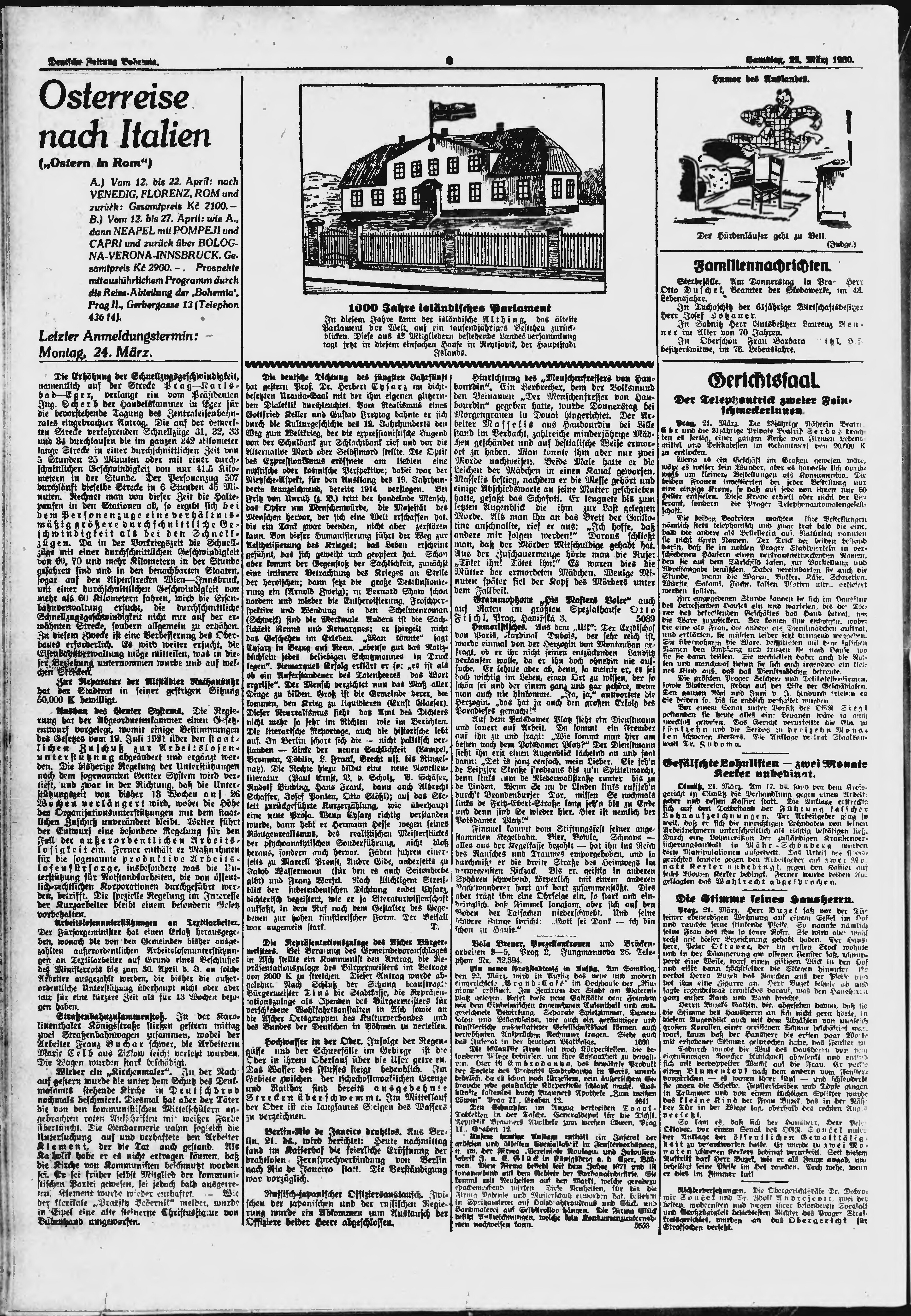 * Datum vydání výtisku: 22.3.1930 Číslo výtisku: 70 Poznámky k výtisku: ranní vydání;