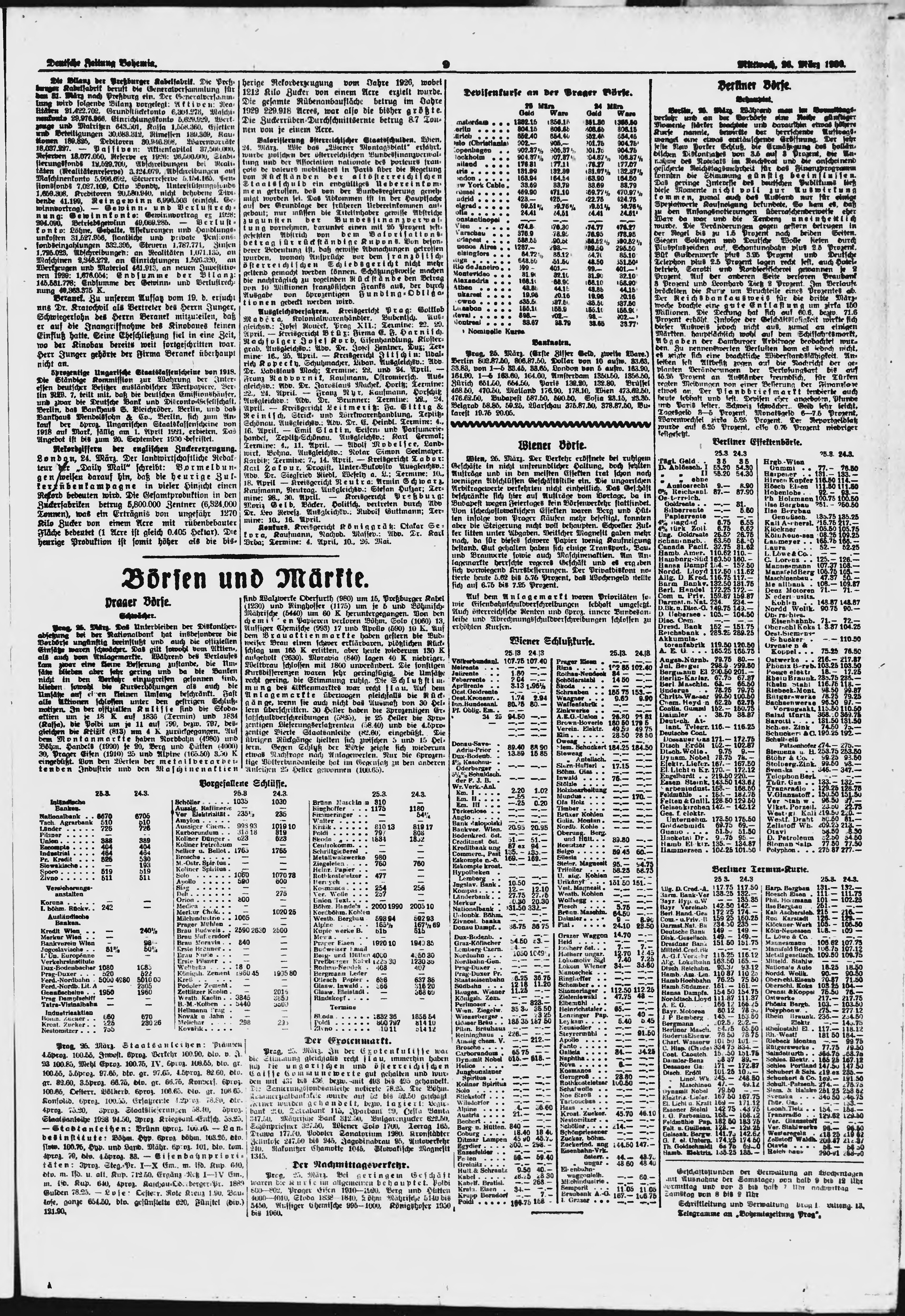 * Datum vydání výtisku: 26.3.1930 Číslo výtisku: 73 Poznámky k výtisku: ranní vydání;